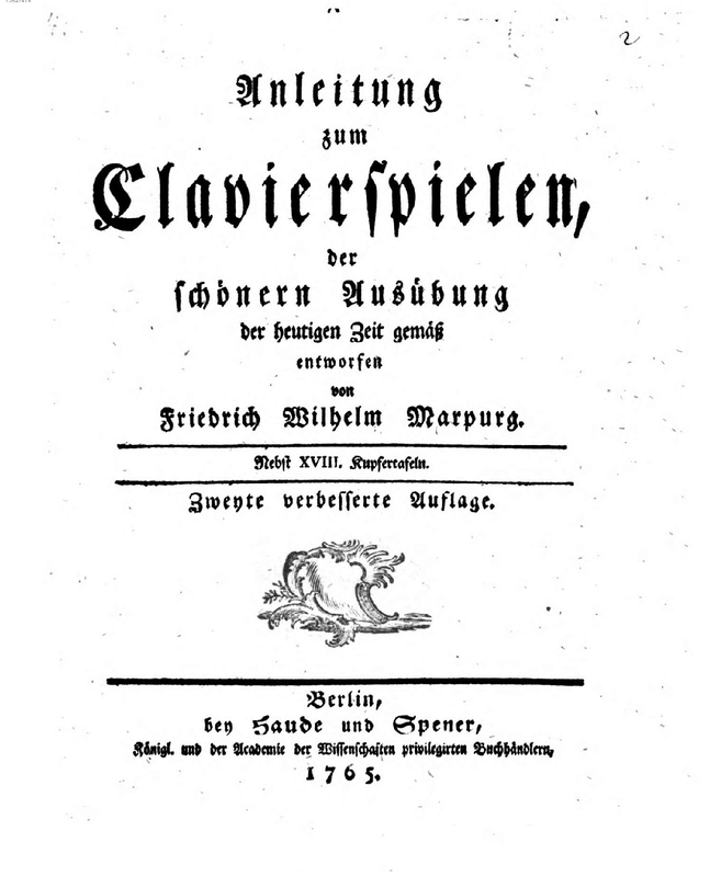 Anleitung zum Clavierspielen, der schönen Ausübung der heutigen Zeit gemäß entworfen von Friedr. Wilh. Marpurg