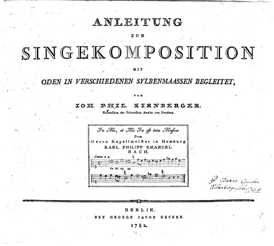 Includes a canon on the name BACH (Fa Mi, et Mi Fa est tota Musica) on the title-page.