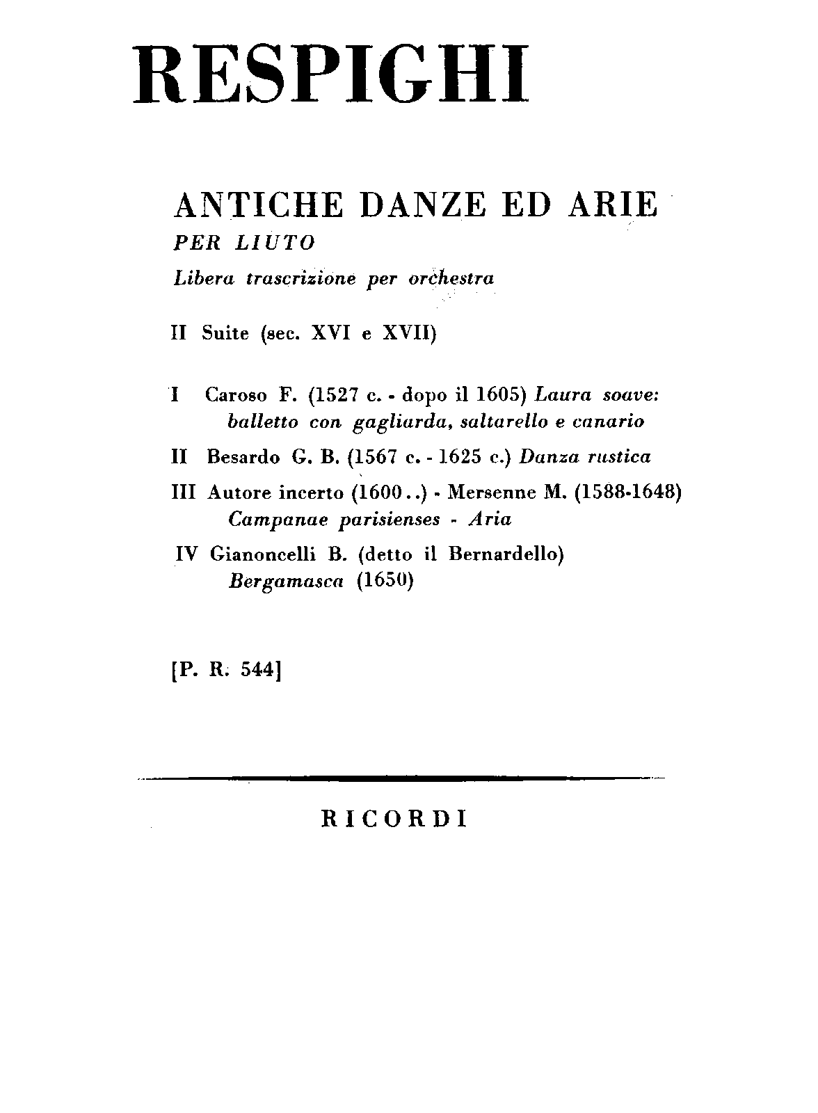 | Name Translations | Antiche arie e danze per liuto; Antiche danze ed arie, 2. Suite; Ancient Airs and Dances, Suite No. 2 |