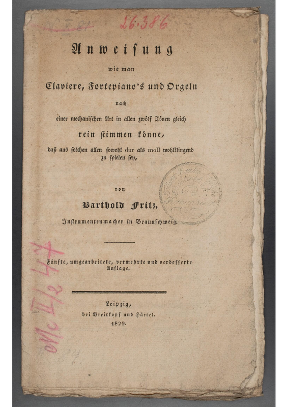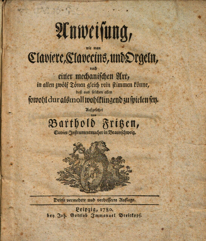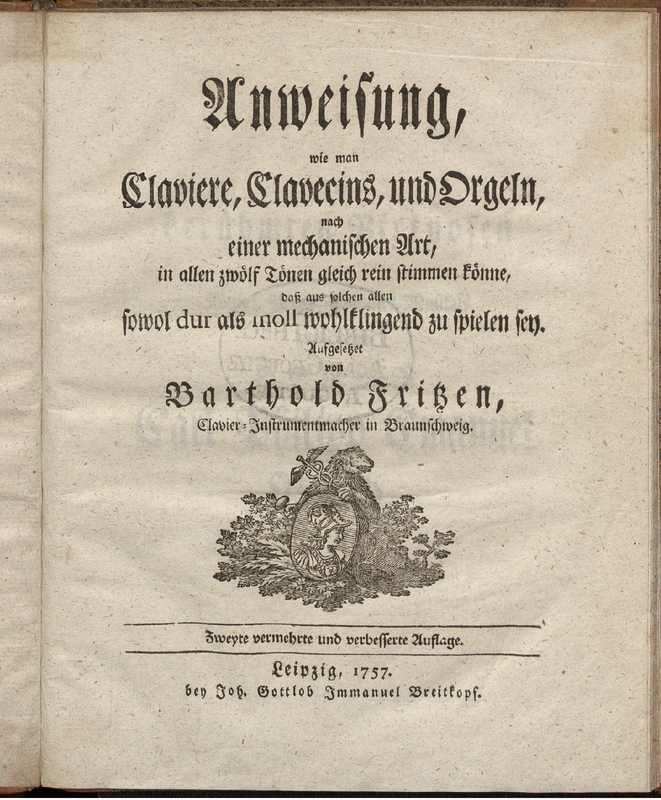 | Alternative. Title | Anweisung, wie man Claviere, Clavecins, und Orgeln, nach einer mechanischen Art, in allen zwölf Tönen gleich rein stimmen könne, dass aus solchen allen sowol dur als moll wohlklingend zu spielen sey. |