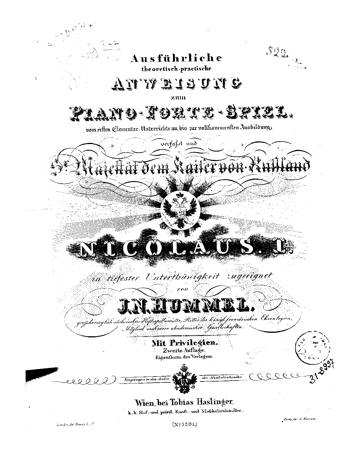 | Alternative. Title | Ausführliche theoretisch-practische Anweisung zum Piano-Forte-Spiel, vom ersten Elementar-Unterrichte an bis zur vollkommenster Ausbildung |