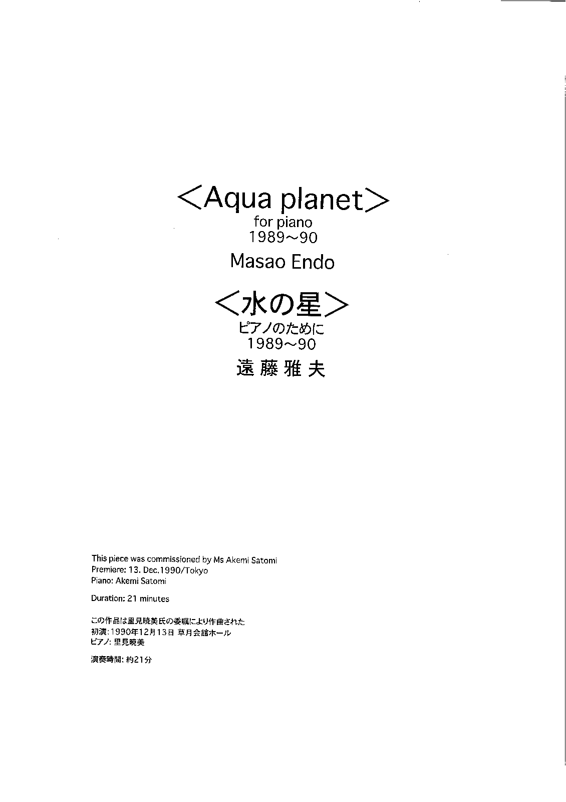 | Work Title | Aqua Planet for Piano |