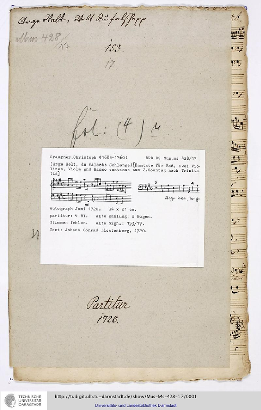 | Instrumentation | vocal - bass solo orchestra - strings, continuo |