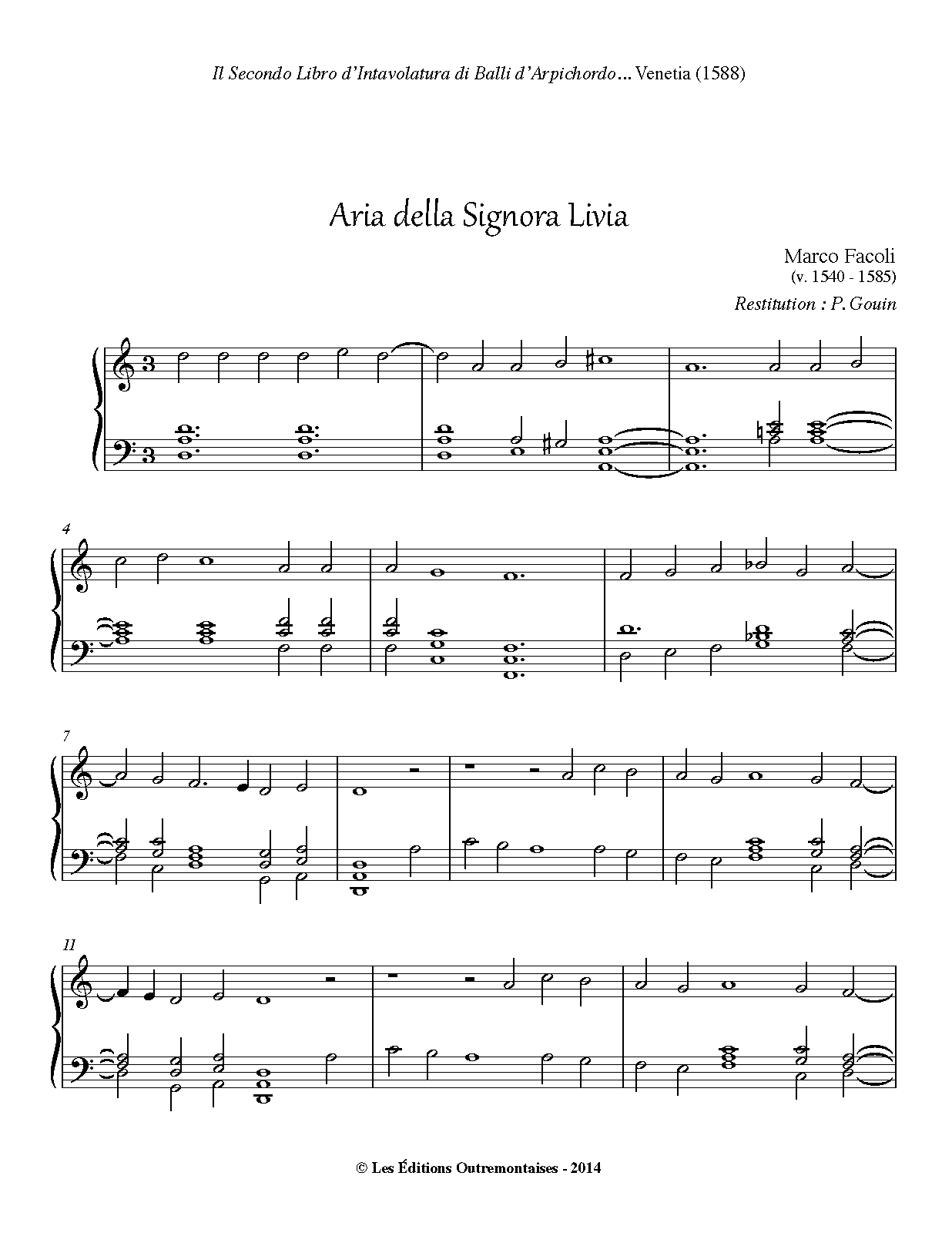 | First Publication | 1588 in Il Secondo Libro d’Intavolatura di Balli d’Arpichordo |