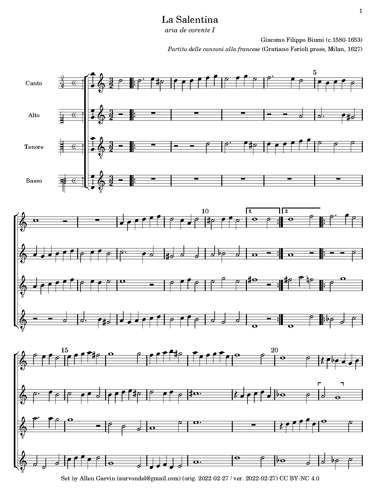 | First Publication | 1627 in Canzoni alla francese à 4. & à 8 con alcune arie de correnti à 4 |