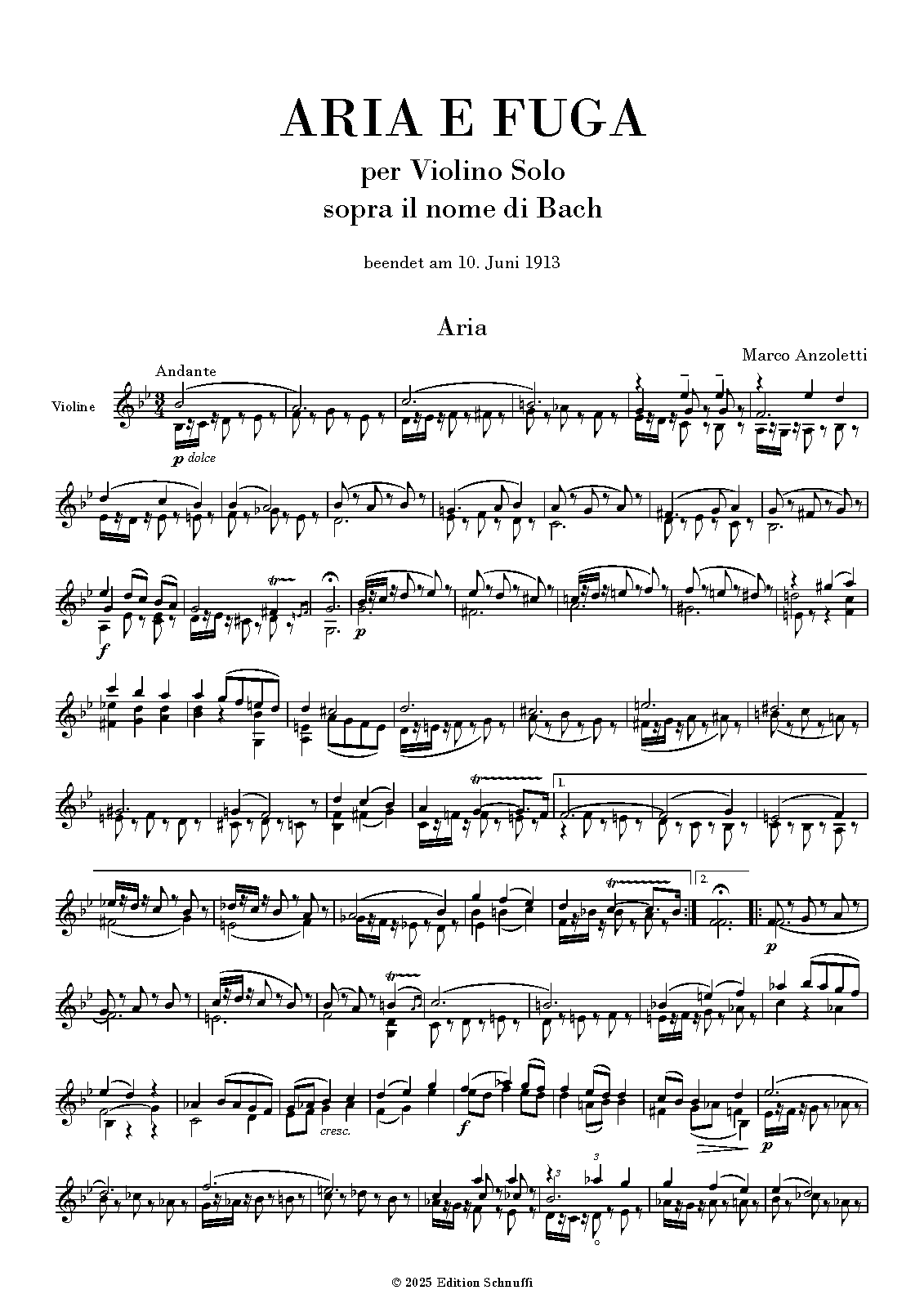 | Work Title | Aria e Fuga per Violino Solo sopra il nome di Bach |