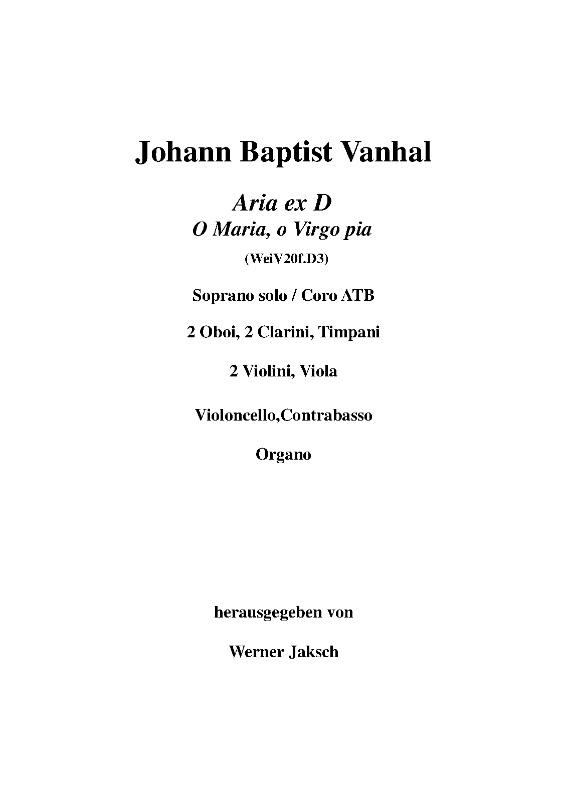 | Alternative. Title | Aria "O Maria o virgo pia" in D major |