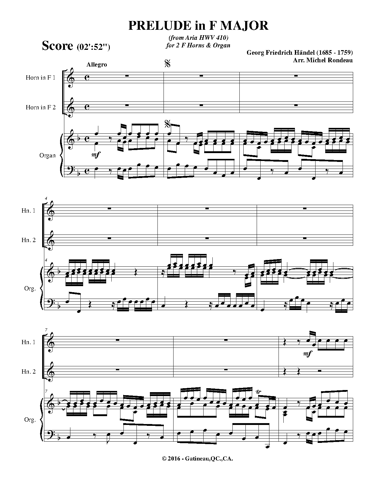 For 2 Horns and Organ (Rondeau)