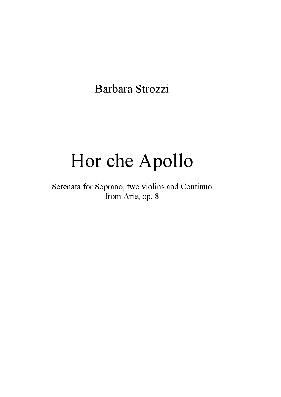 voice, continuo (Hor che Apollo also contains parts for 2 violins)