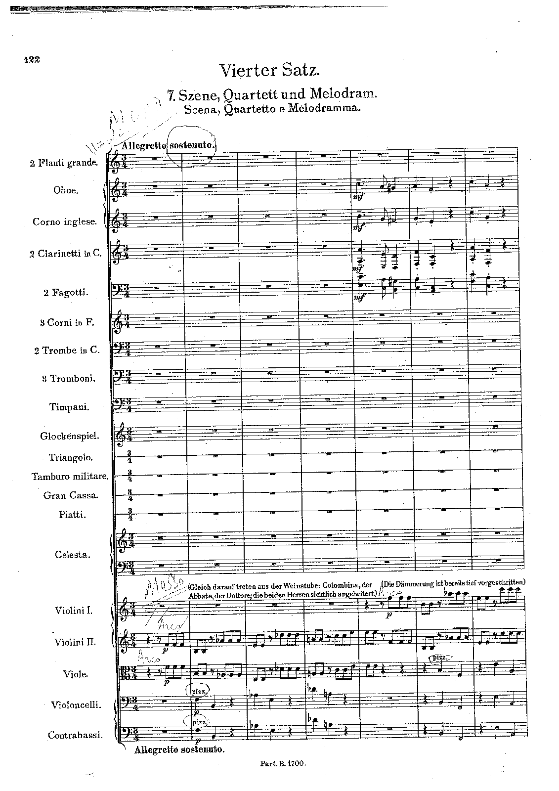 ⇒ 4 more: 7b. Quartett und Melodram (Quartetto e Melodramma) • 8. Monolog (Monologo) • 9. Umzug und Schlußtanz (Processione e Danza finale) • Appendix: Sung Variant of Arlecchino's Closing Speech