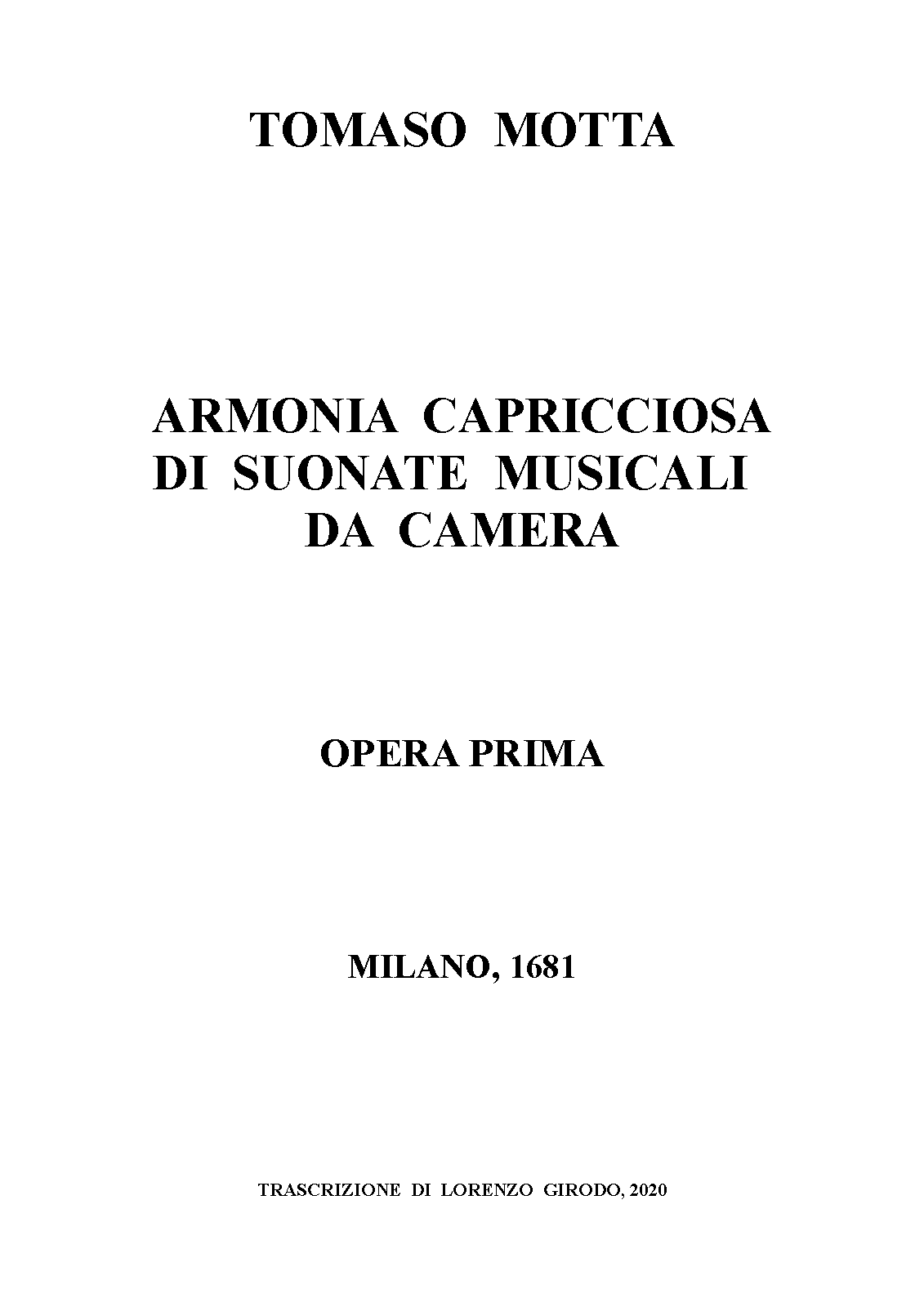 Armonia Capricciosa di svonate mvsicali da camera, con alcvne ariette per balli allo stile francese