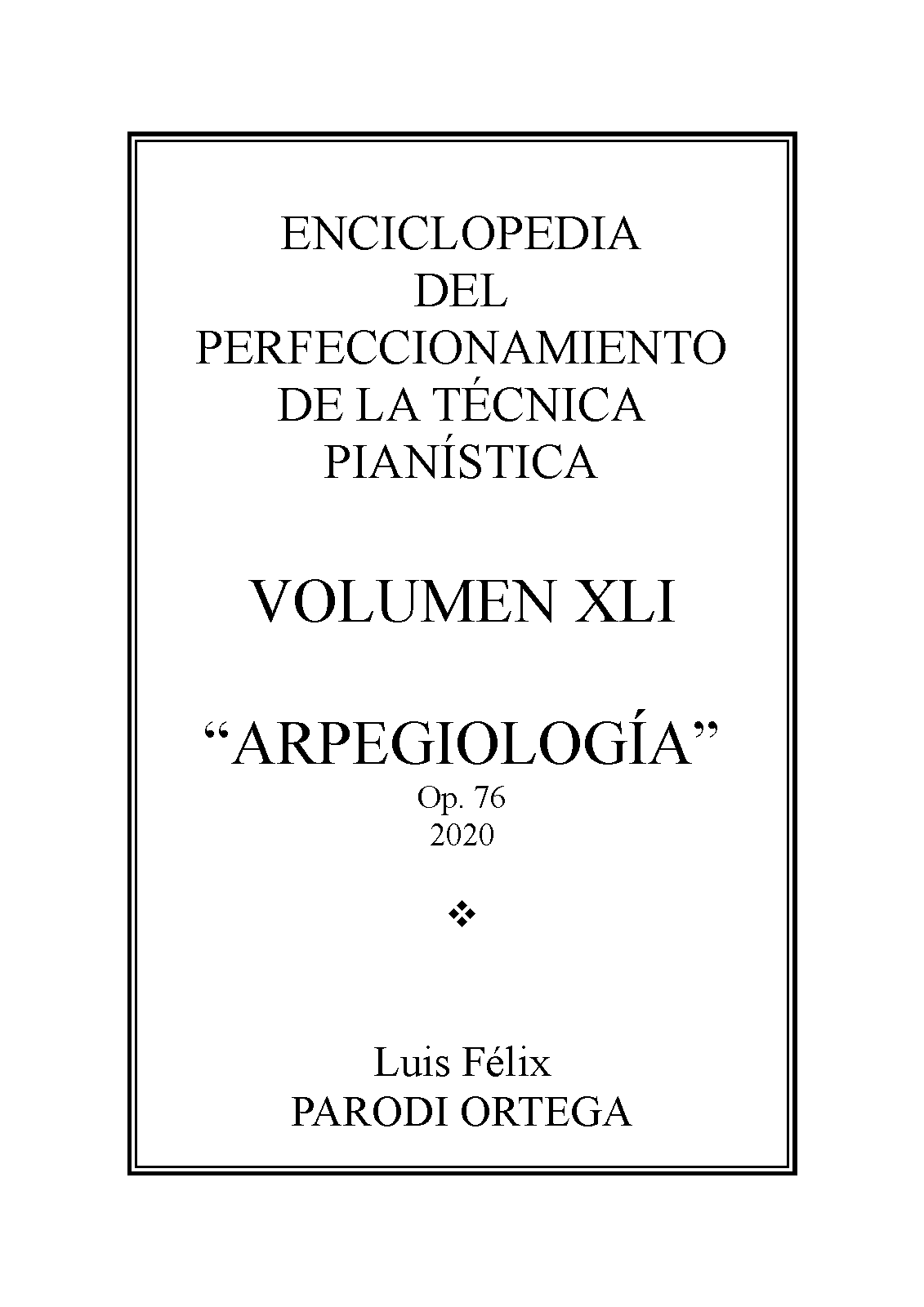 | Extra Information | ARPEGIOLOGÍA OP. 76 ES EL VOLUMEN XLI DE MI "ENCICLOPEDIA DEL PERFECCIONAMIENTO DE LA TÉCNICA PIANÍSTICA".