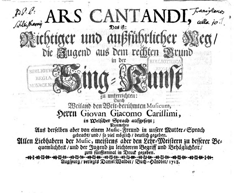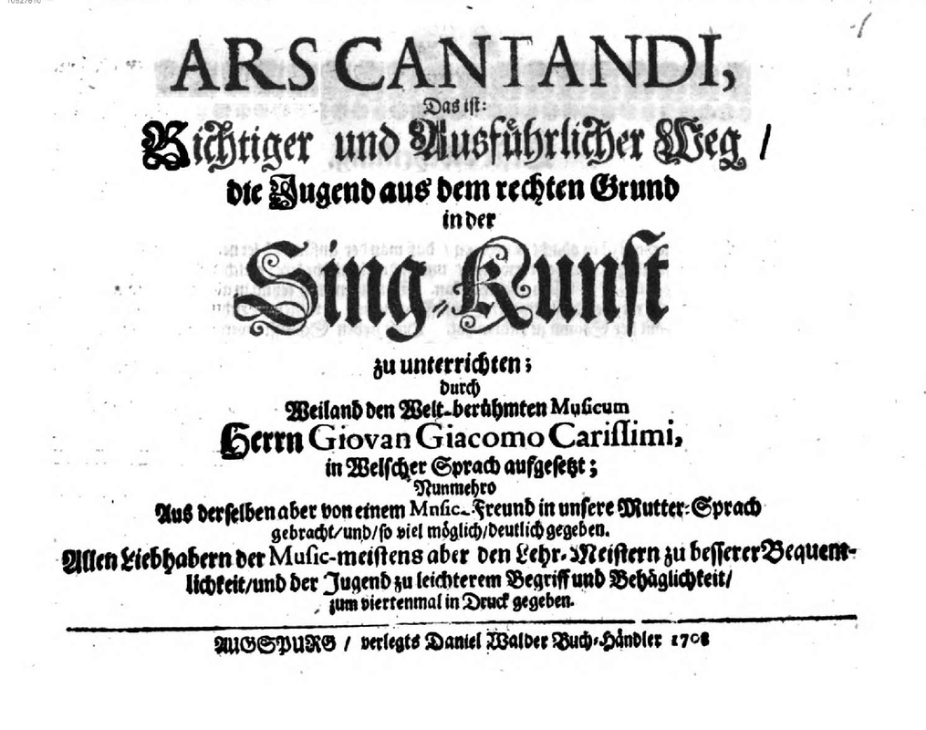 Ars Cantandi, das ist richtiger und Ausfuehrlicher Weg, die Jugend aus dem rechien Grund in der Sing-Kunst zu unterrichten