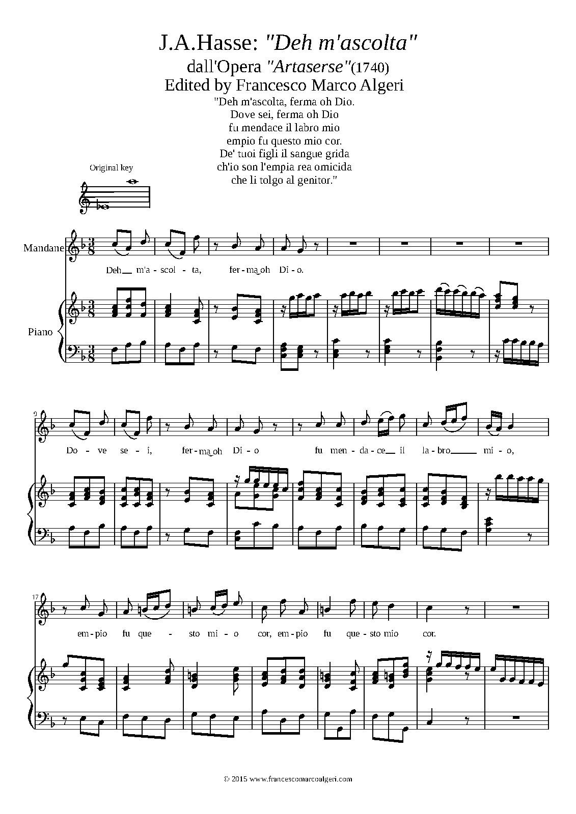 Extra Information According to this Wikipedia article, Hasse also contributed to a 1734 pastiche of Artaserse, along with Attilio Ariosti, Nicola Porpora and Riccardo Broschi. It is unknown whether the contribution was pre-existing arias from this opera. See also Artaserse by Broschi, Artaserse by Ariosti, and Artaserse by Porpora