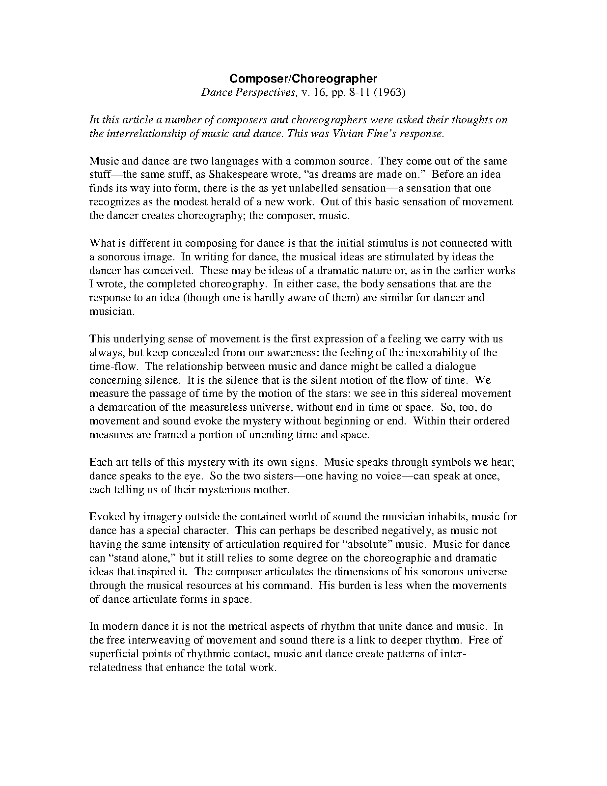 Various articles about Vivian Fine and transcripts of interviews that she did.