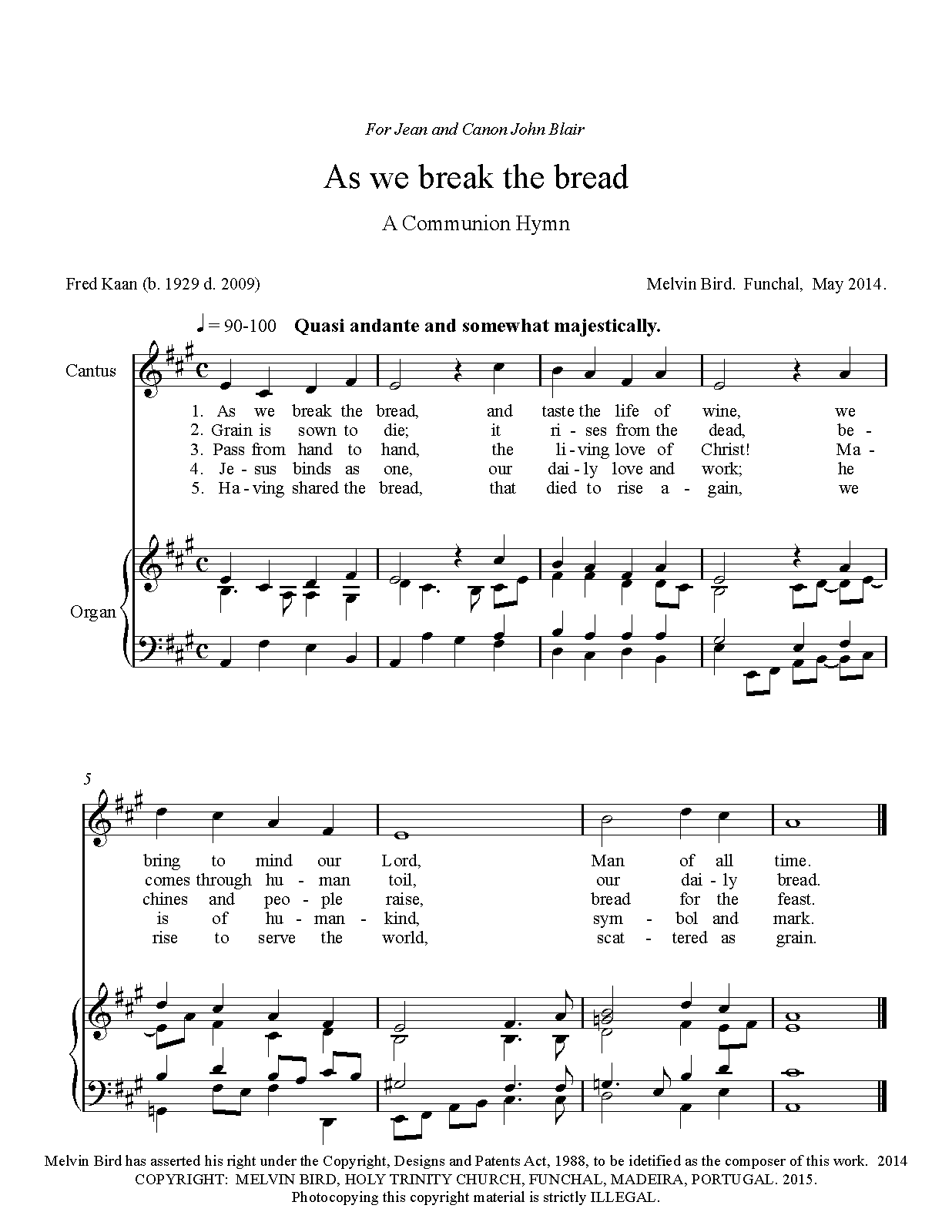 Melvin Bird has asserted his right under the Copyright, Designs and Patents Act, 1988, to be identified as the composer of this work. Please contact the composer for further information. The composer welcomes any performances and recordings. melvin.bird@hotmail.com. A clear and clean text.