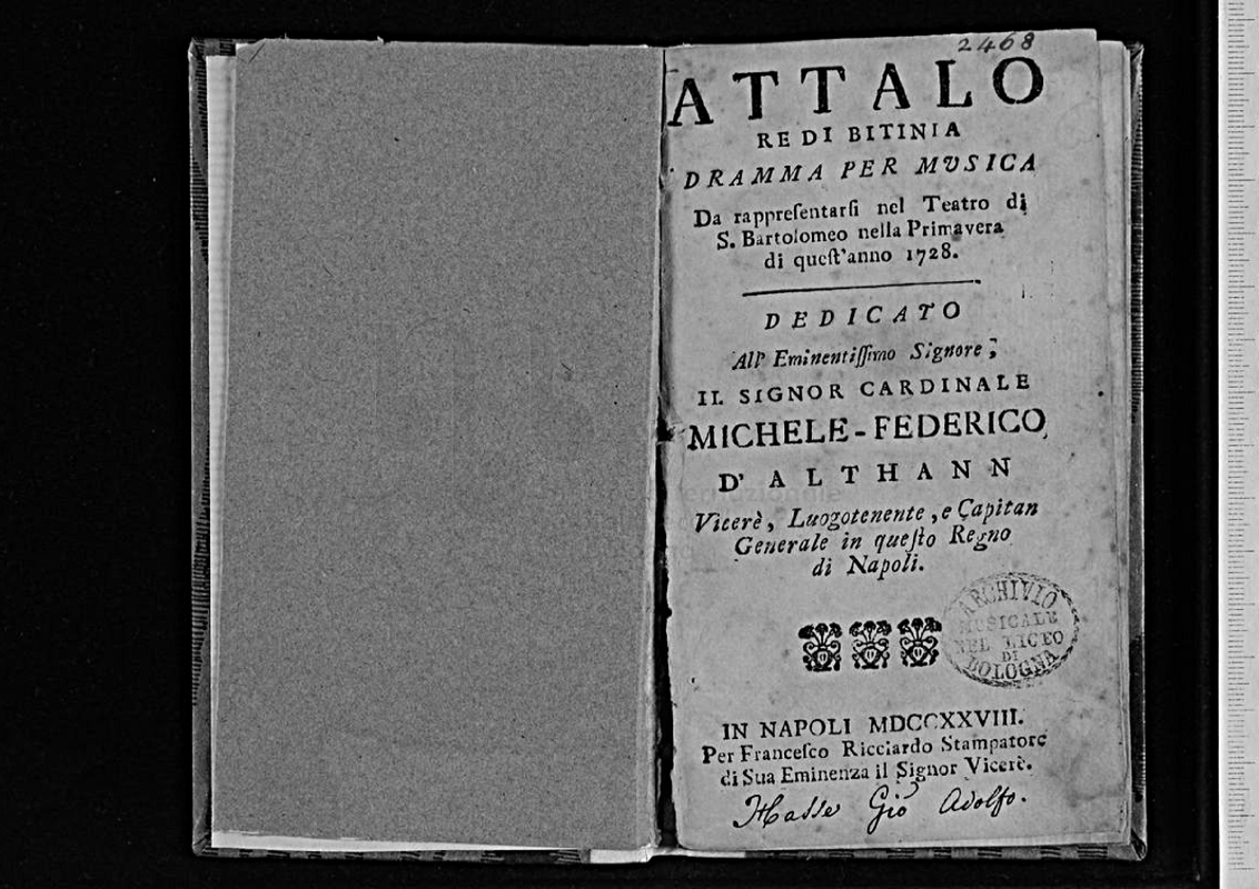 | Alternative. Title | Dramma per musica da rappresentarsi nel Teatro di S. Bartolomeo nella primavera di quest'anno 1728. |