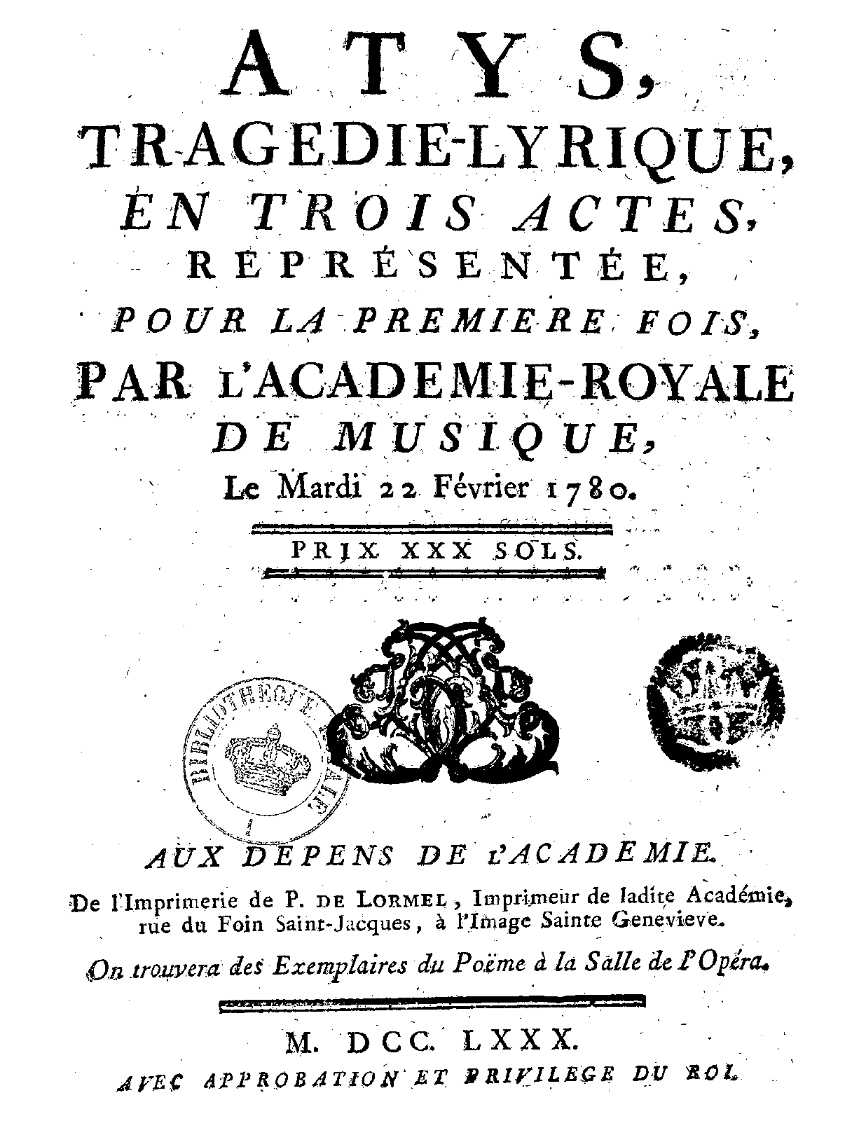 | First Performance. | 1780-02-22 in Paris: Opéra |