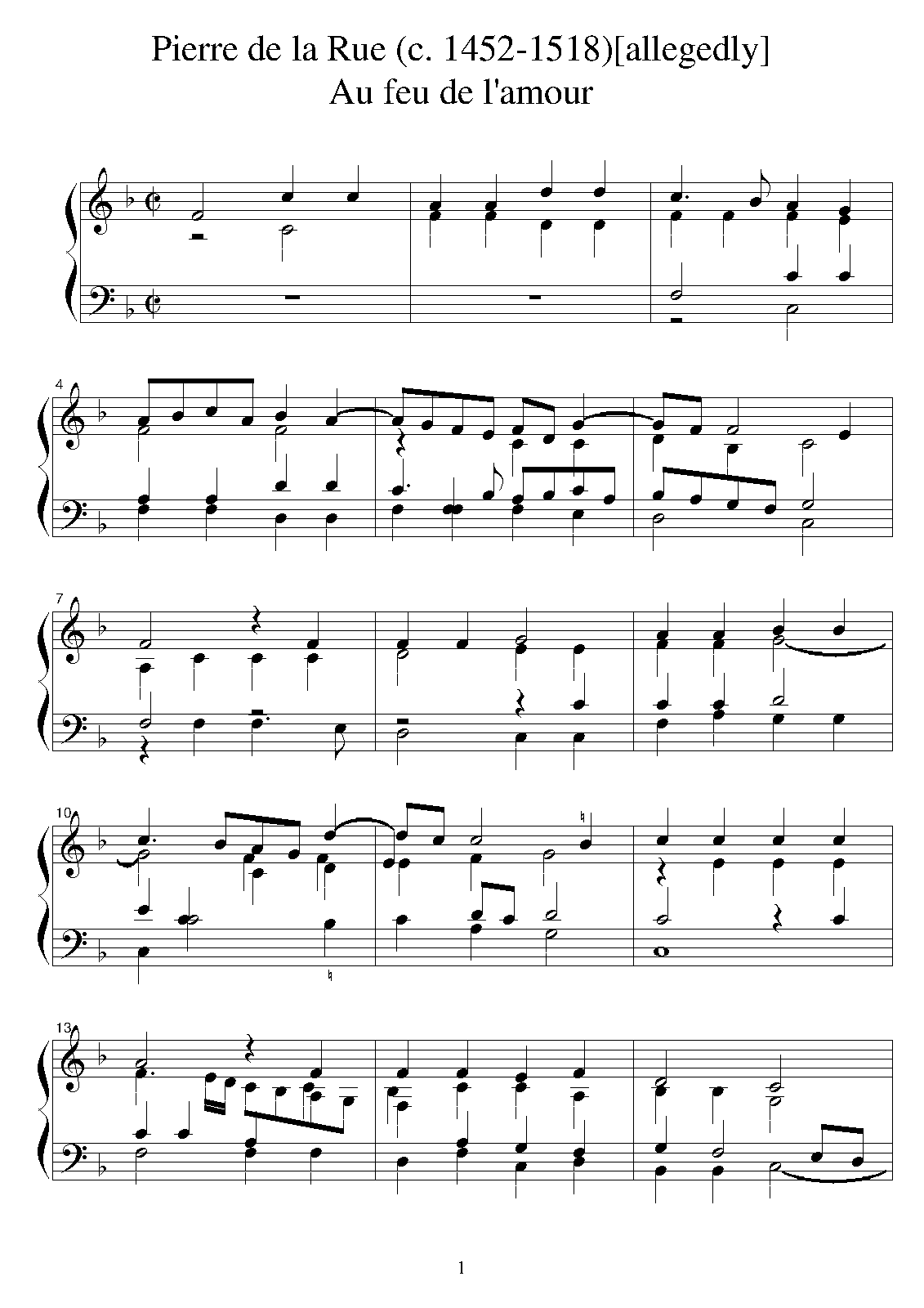 1541, i.e. after the death of Pierre de la Rue, so the authenticity is doubtful