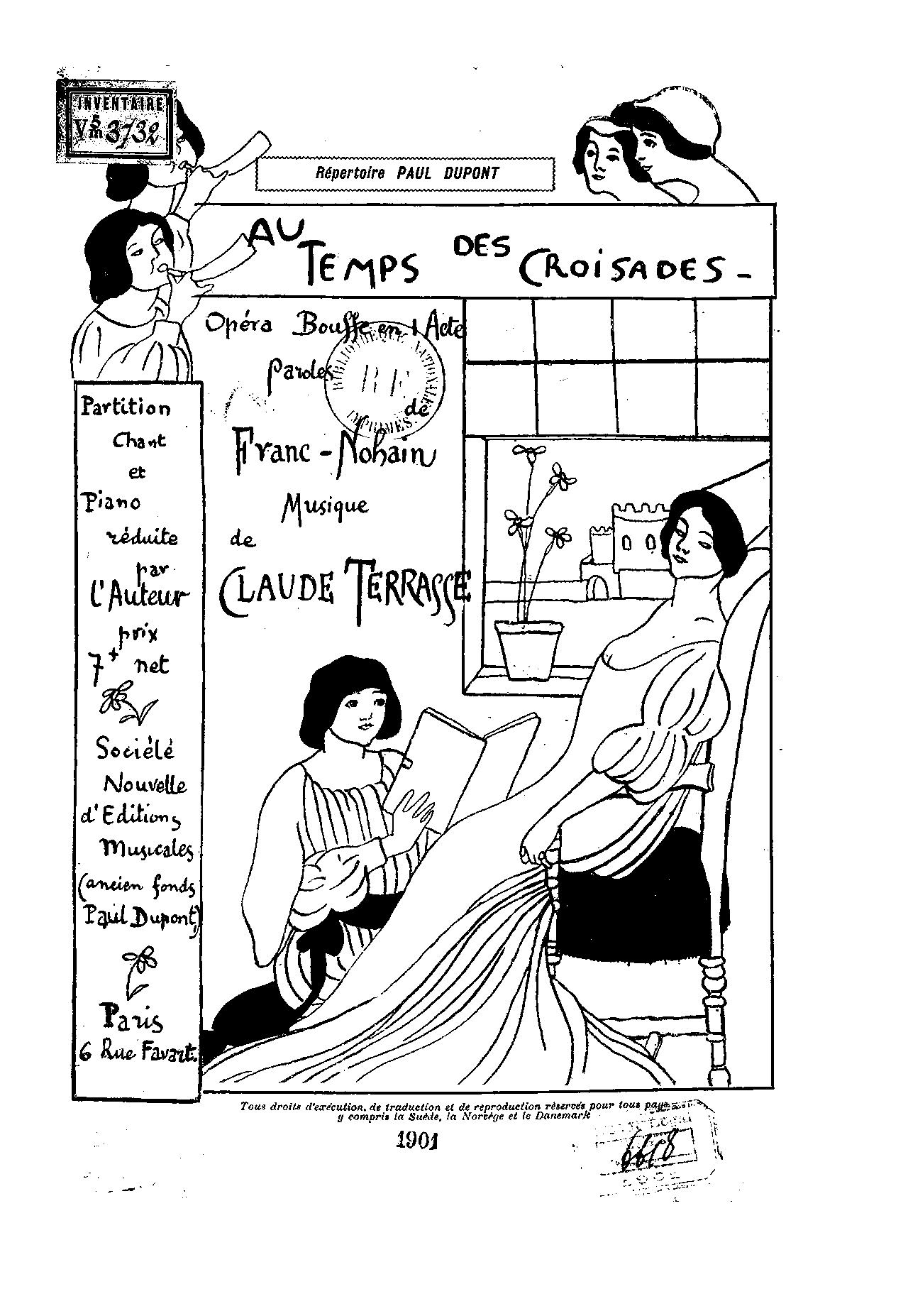 | Copyright Information | Publication noted in the Bibliographie de la France : 90e année, 2e série, Nº 52, 28 Décembre 1901, p.855, reg.6545 (vocal score). BNF notice bibliographique |
