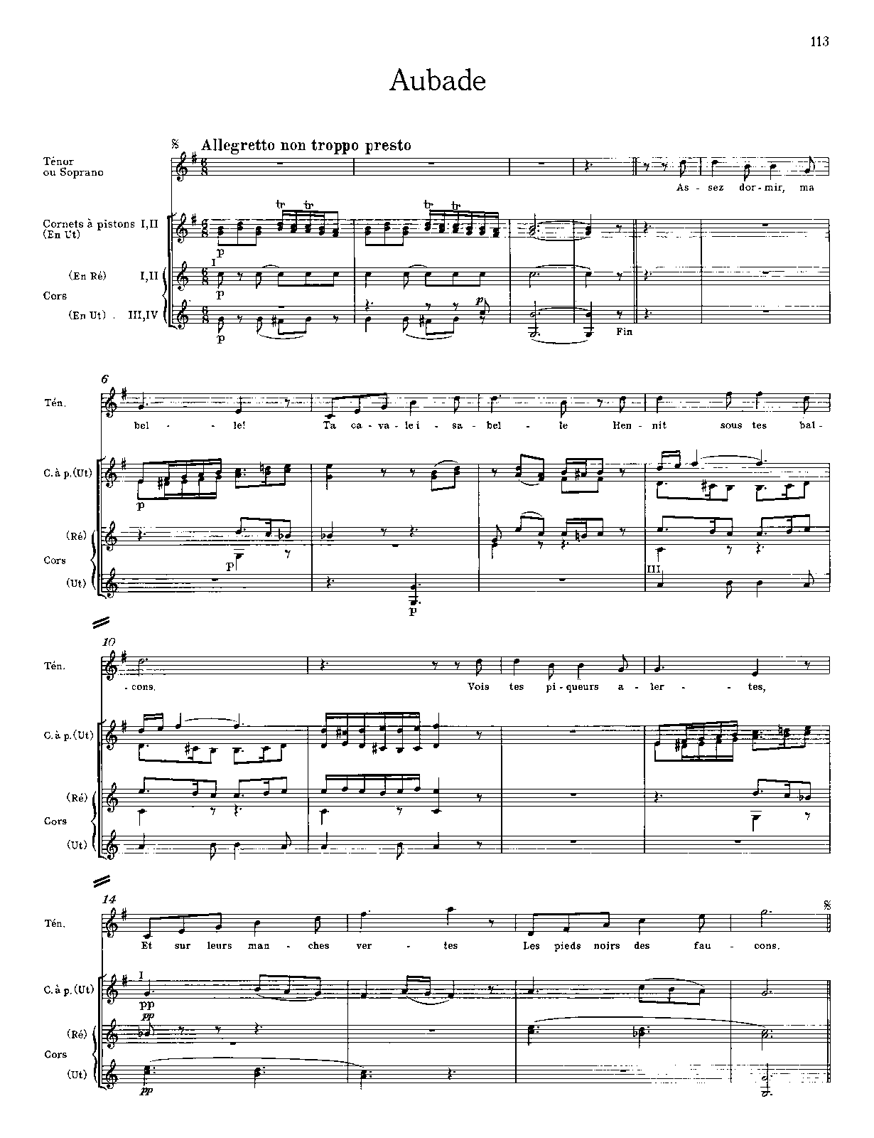 Name Aliases Aubade, H. 78B; Le Lever; Assez dormir, ma belle; L'Aubade