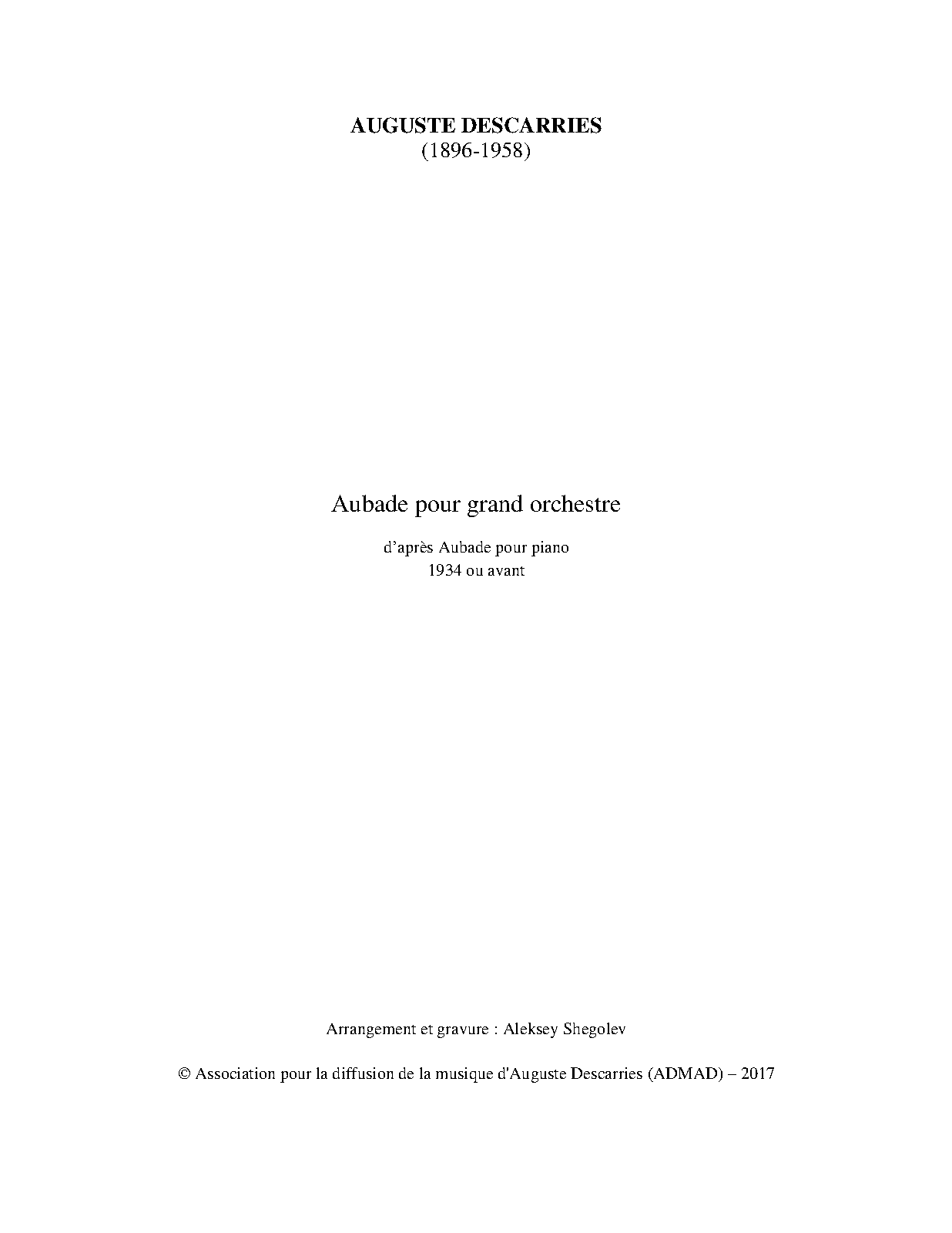 | Genre Categories | Aubades; For piano; Scores featuring the piano; |