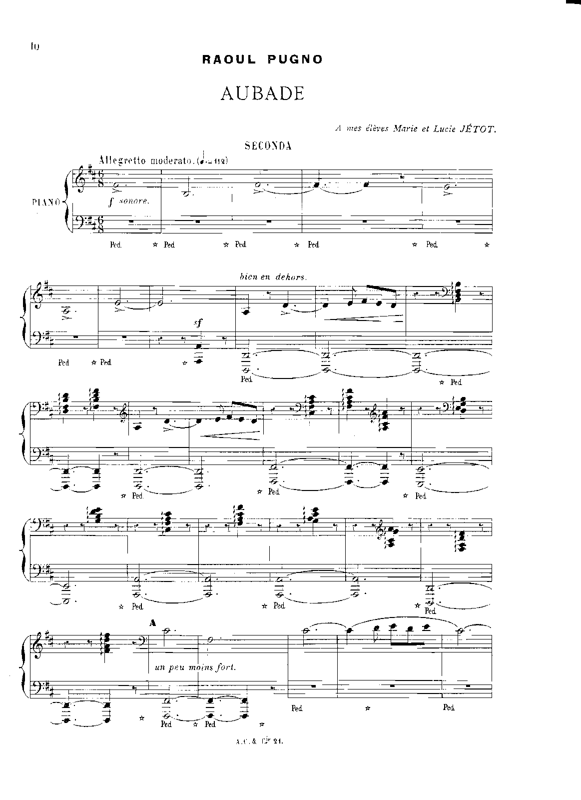 | Genre Categories | Aubades; For piano 4 hands; Scores featuring the piano; |