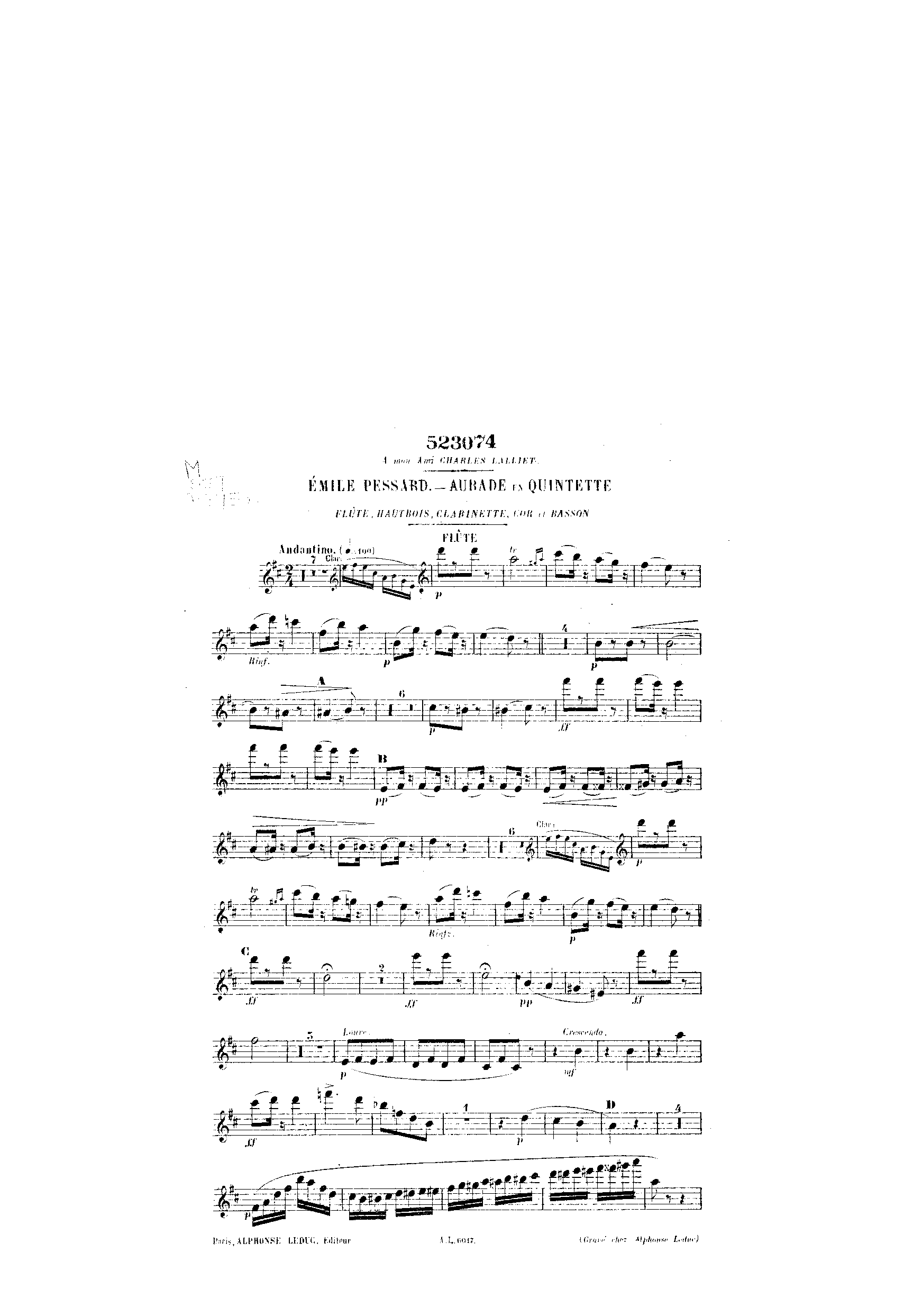 | Genre Categories | Aubades; For flute, oboe, clarinet, bassoon, horn; Scores featuring the flute; |