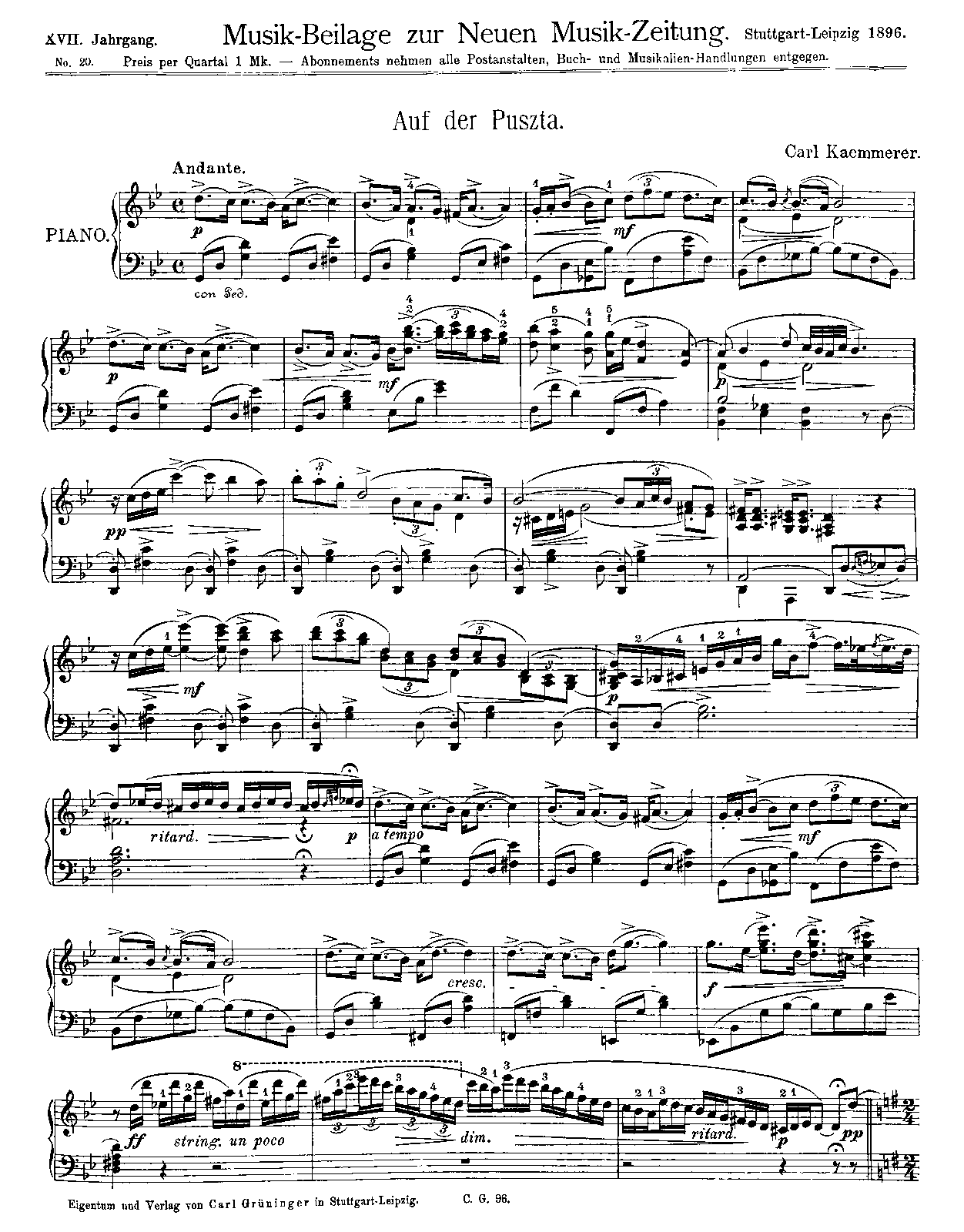 Neue Musik-Zeitung, 1896, No.20. Stuttgart/Leipzig: Carl Grüninger, 1896. Plate C.G. 96.
