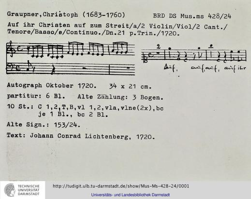 | Librettist | Johann Conrad Lichtenberg (1689-1751) |