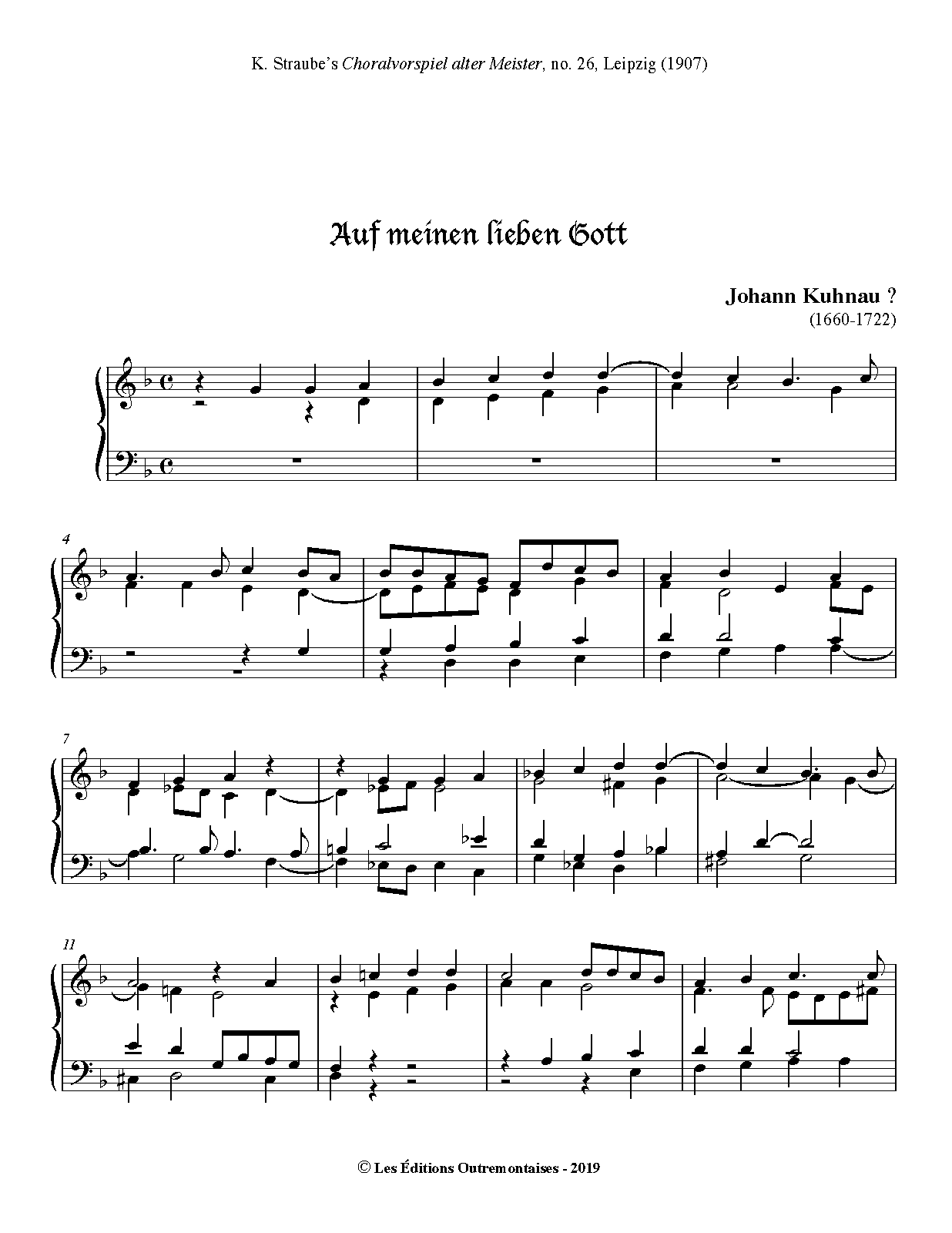 | Extra Information | Identified only by J. K. in the manuscript and attributed to Johann Kuhnau by Karl Straube. |