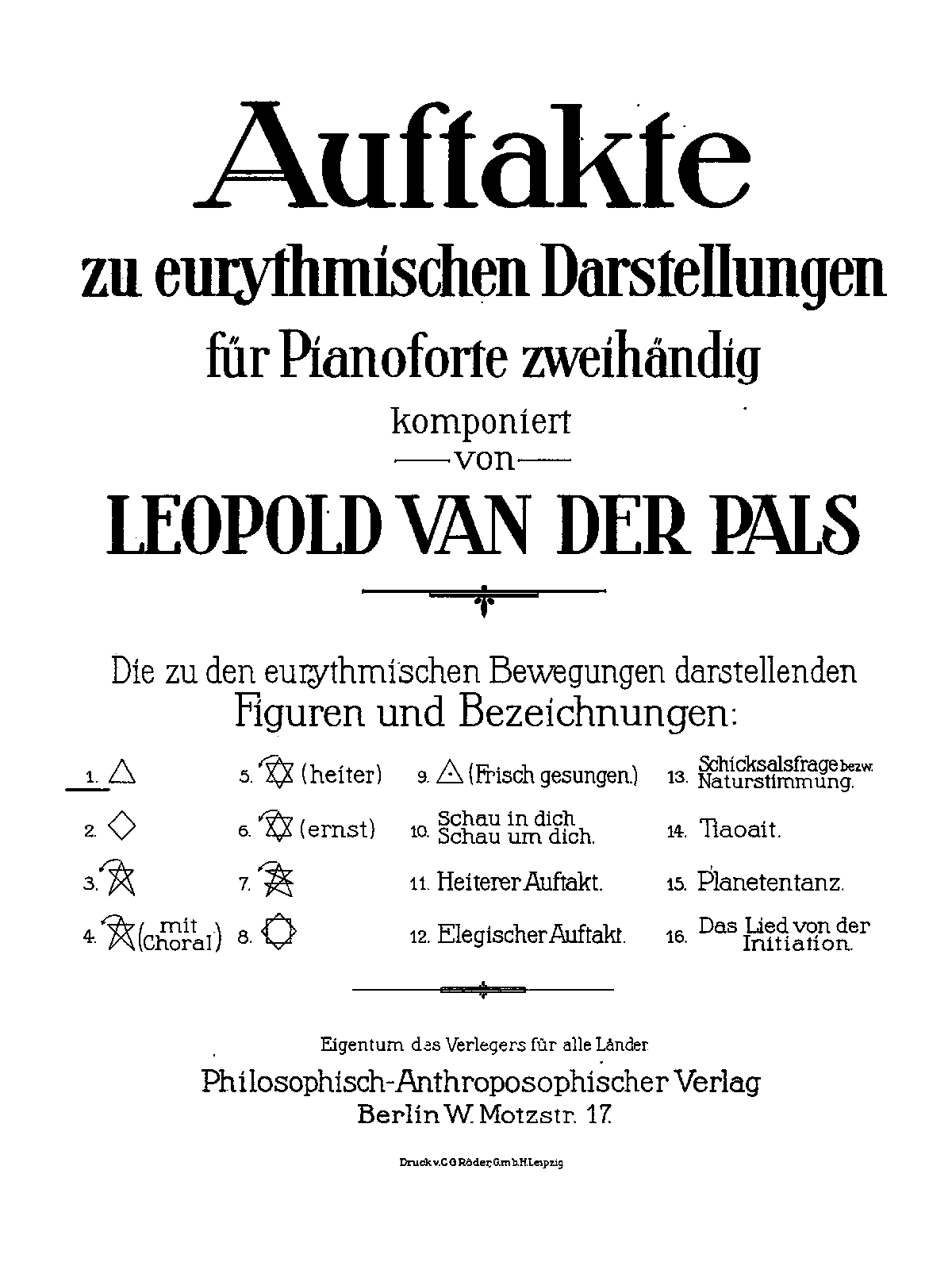 | Work Title | Auftakte zu eurythmischen Darstellungen |