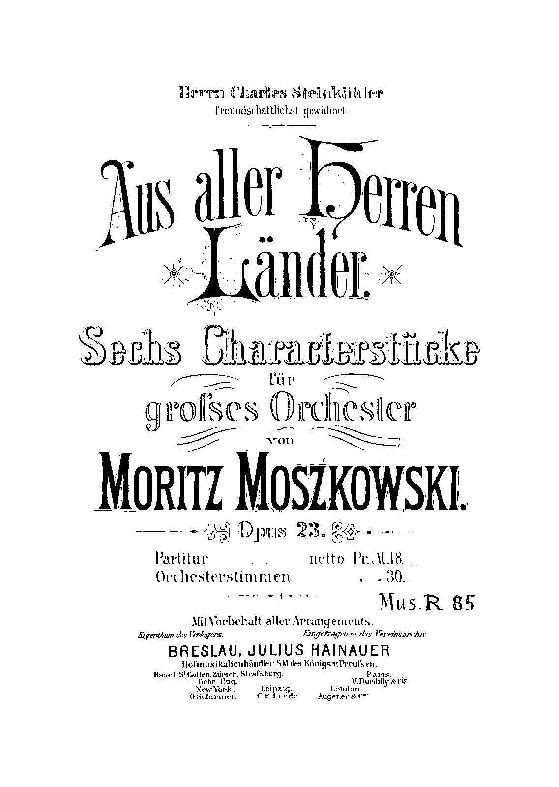 Publication first announced in Monatsbericht (1879), p.297. Moskowski's orchestral version changed the order of the six numbers to the following: 1, 5, 2, 3, 4, 6.