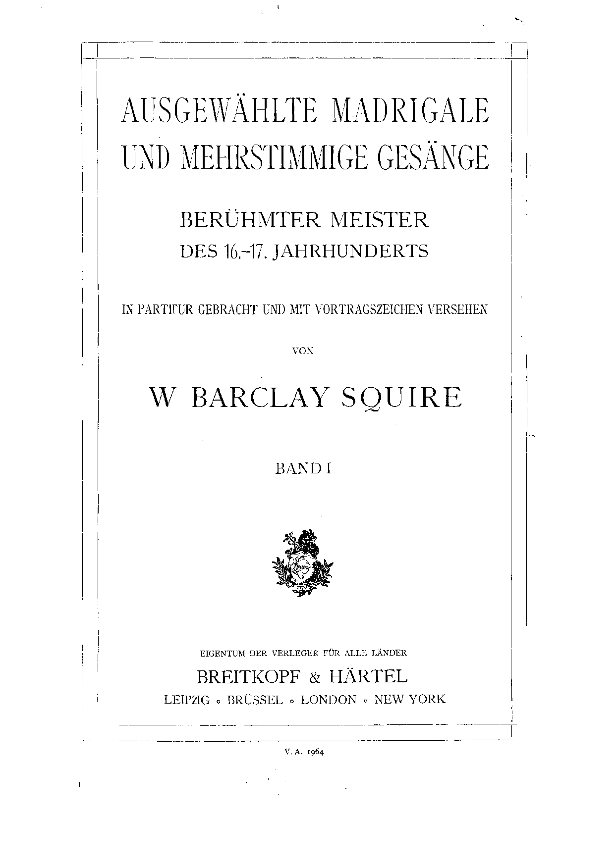 | Work Title | Ausgewählte Madrigale und mehrstimmige Gesänge berühmter Meister des 16.-17. Jahrhunderts |