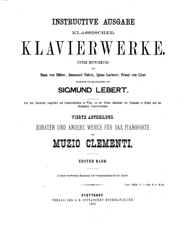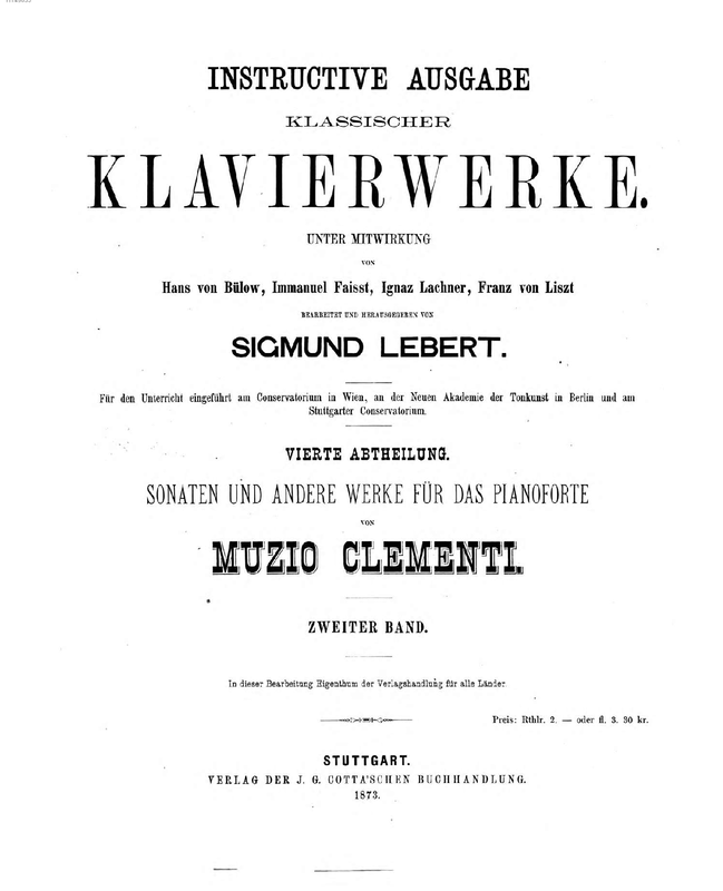 | Alternative. Title | Ausgewählte Sonaten und andere Werke für das Pianoforte von Muzio Clementi |