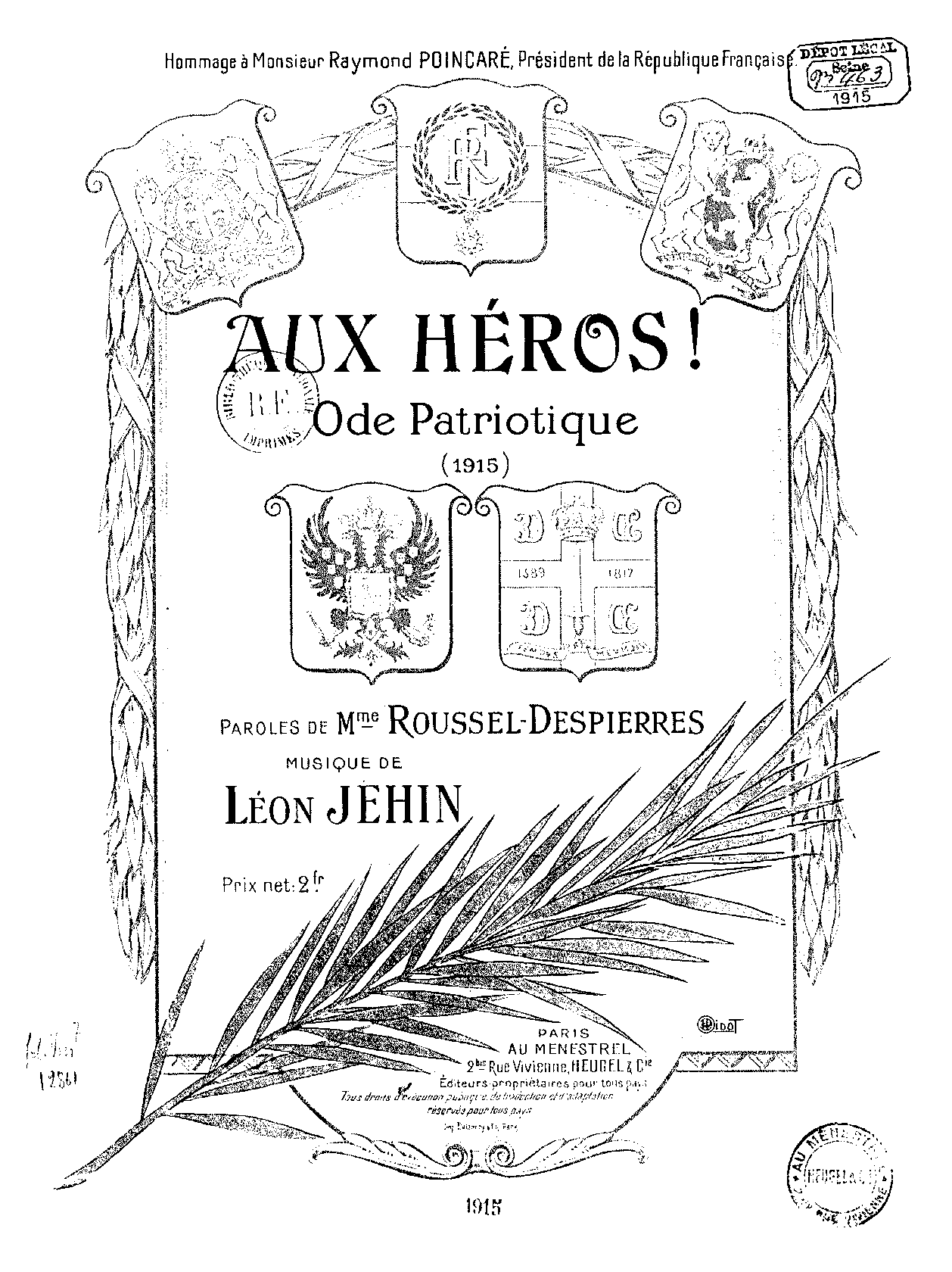 | Dedication | Hommage à Monsieur Raymond Poincaré, Président de la République Française |