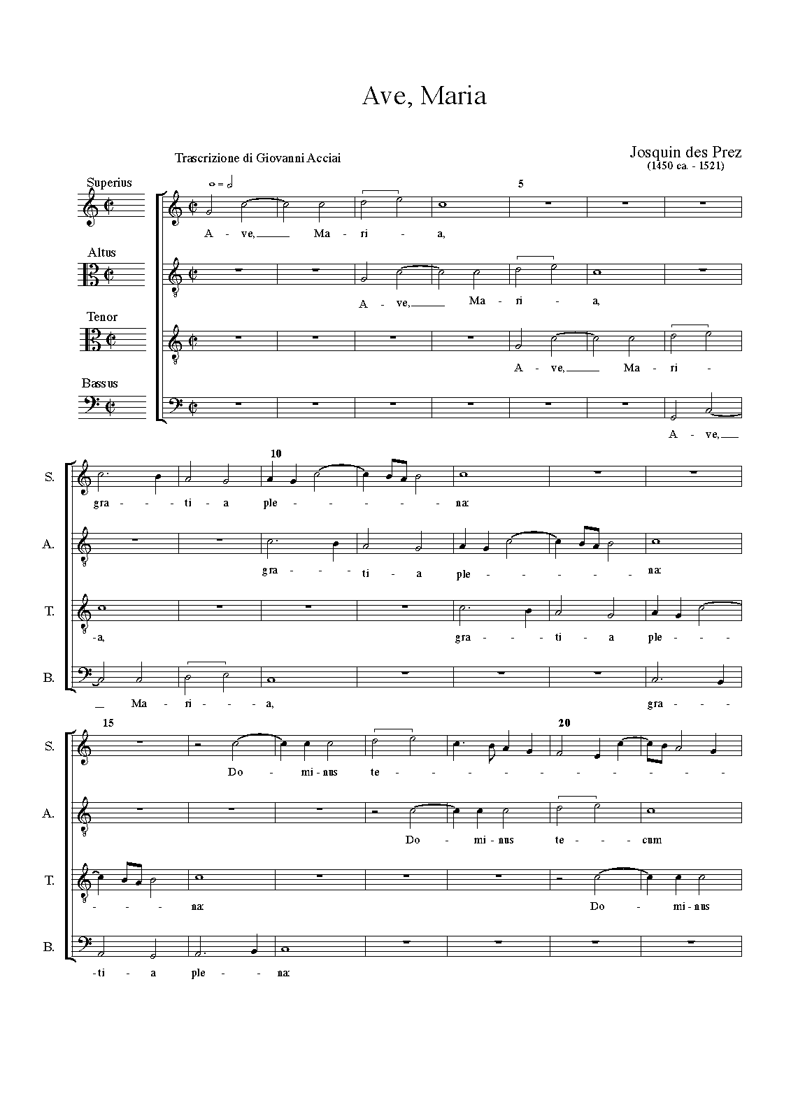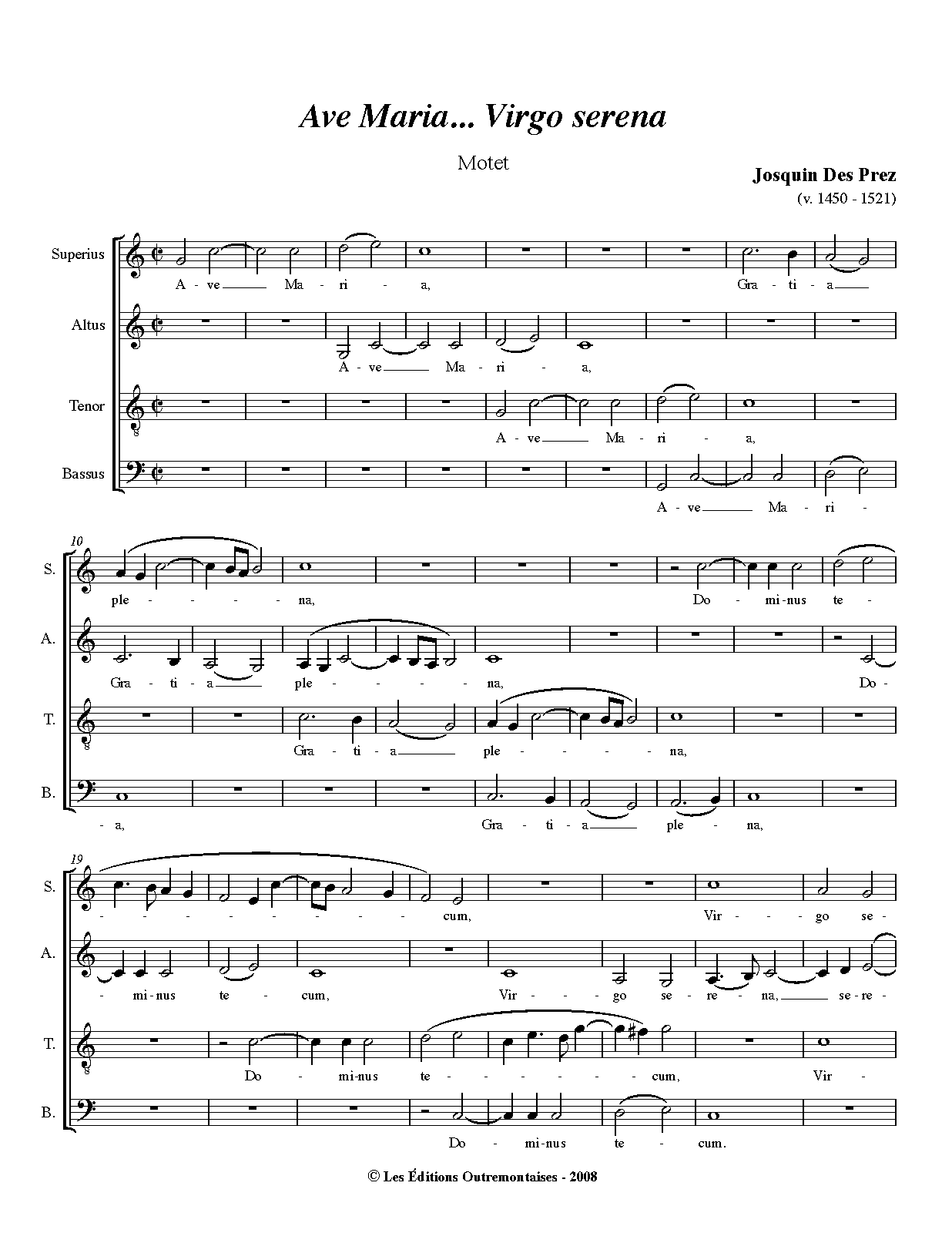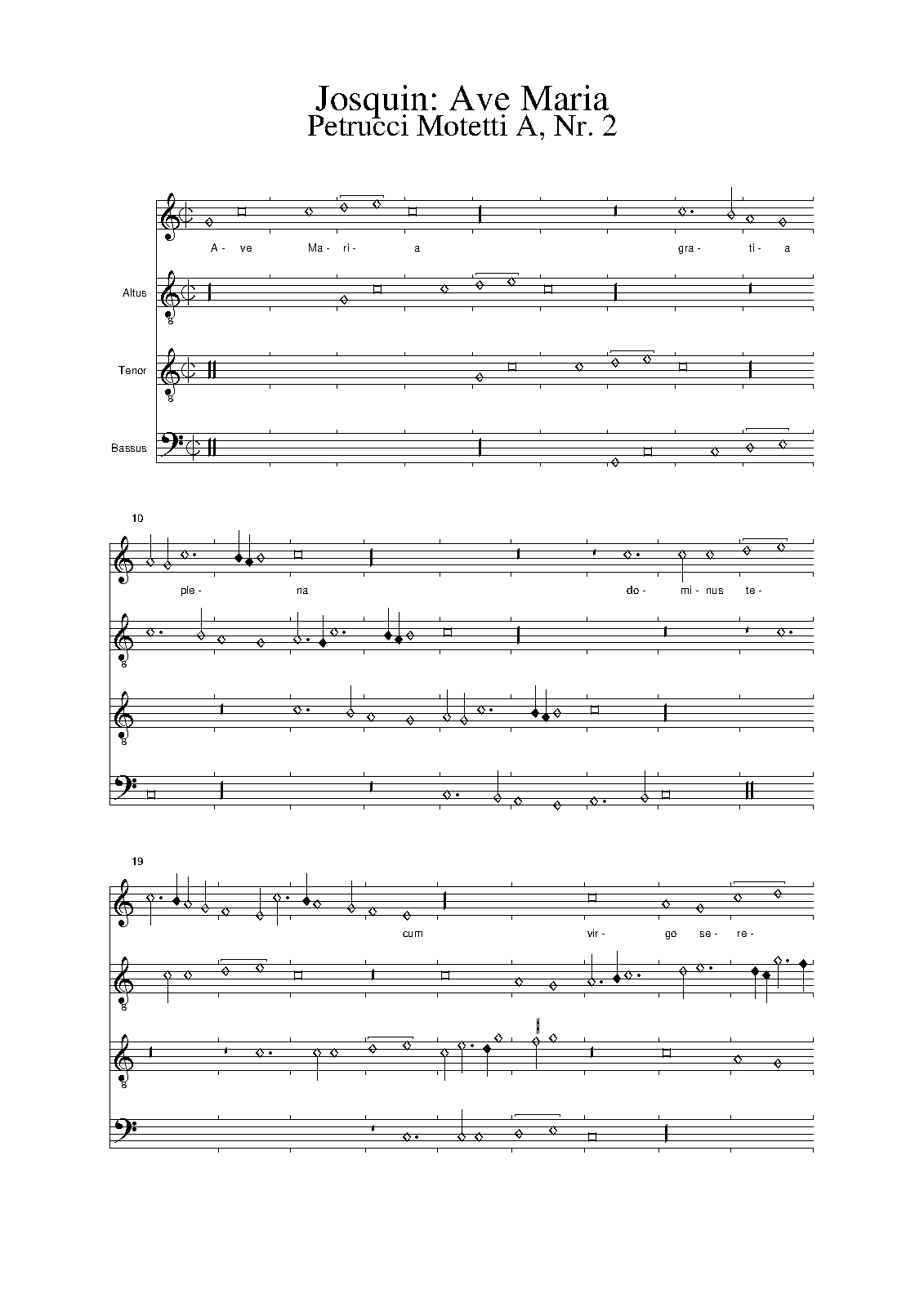 - The popularity of this piece is attested by the fact it survives in more than 20 manuscripts in the late 15th and early 16th century (and two prints, including being the opening piece in Petrucci's first print of motets in 1502).