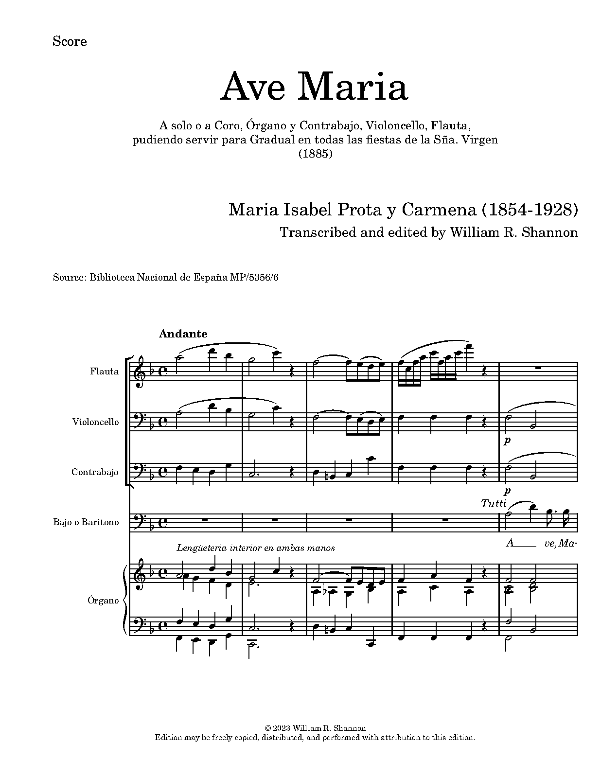 Ave Maria: A solo o a Coro, Órgano y Contrabajo, Violoncello, Flauta, pudiendo servir para Gradual en todas las fiestas de la Sña. Virgen