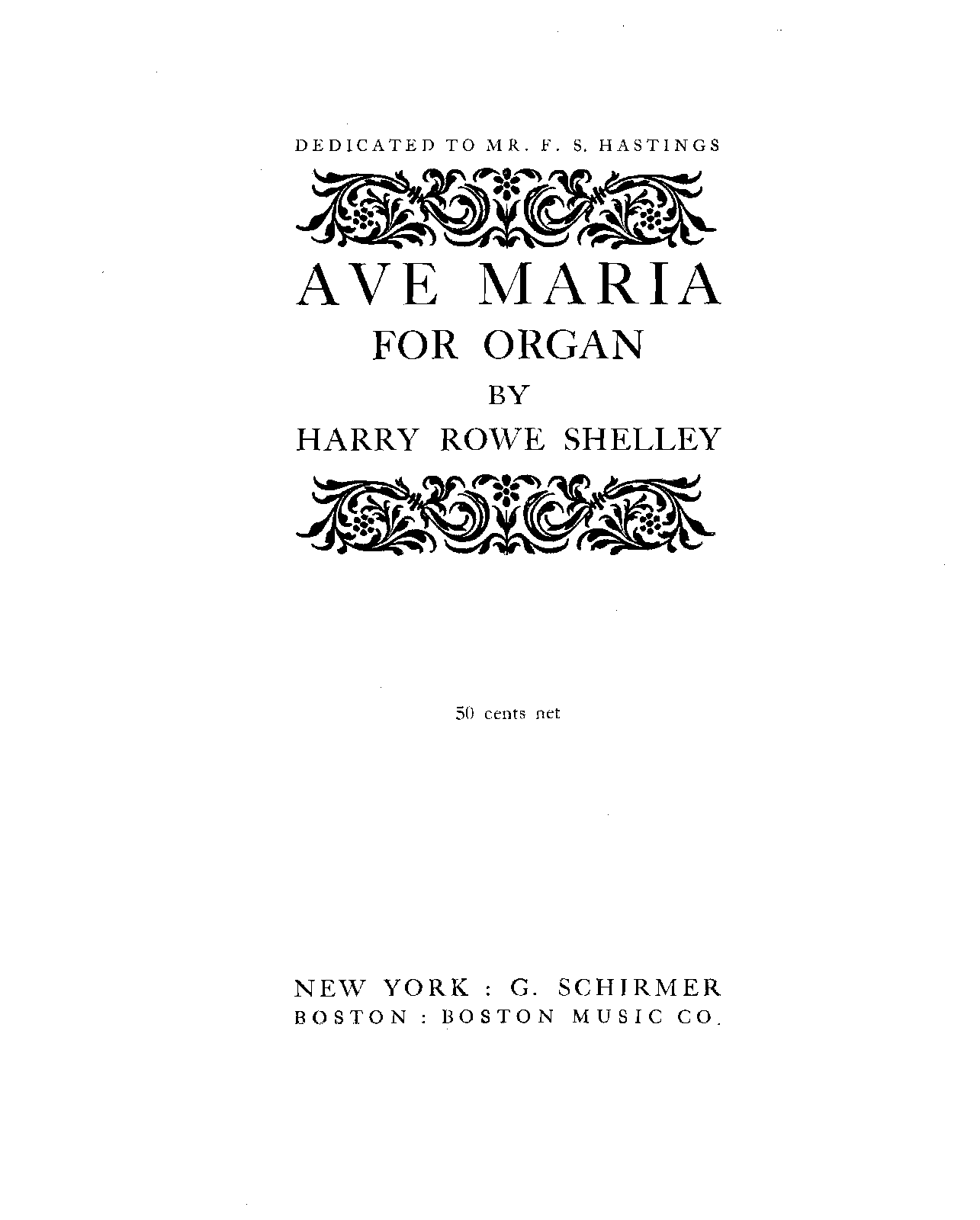 | First Publication. | 1909 – New York: G. Schirmer |