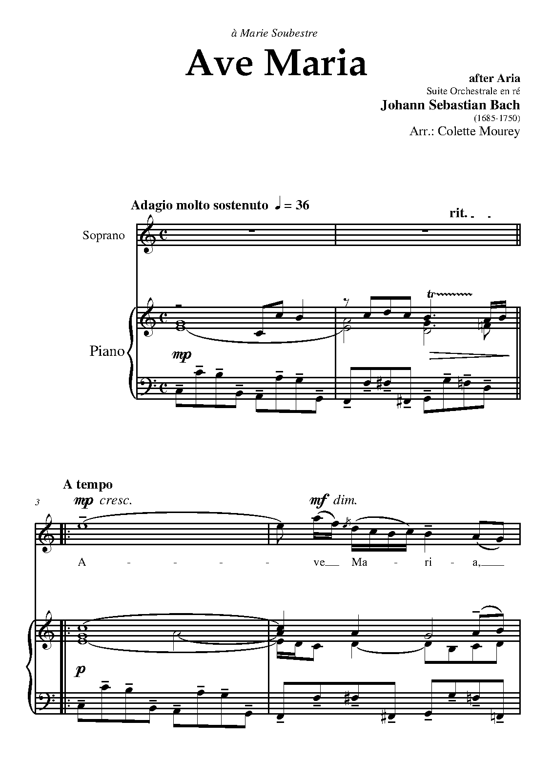 | Related Works | Ave Maria text set to the Air (No.3) from Orchestral Suite No.3 in D major, BWV 1068 by Johann Sebastian Bach |