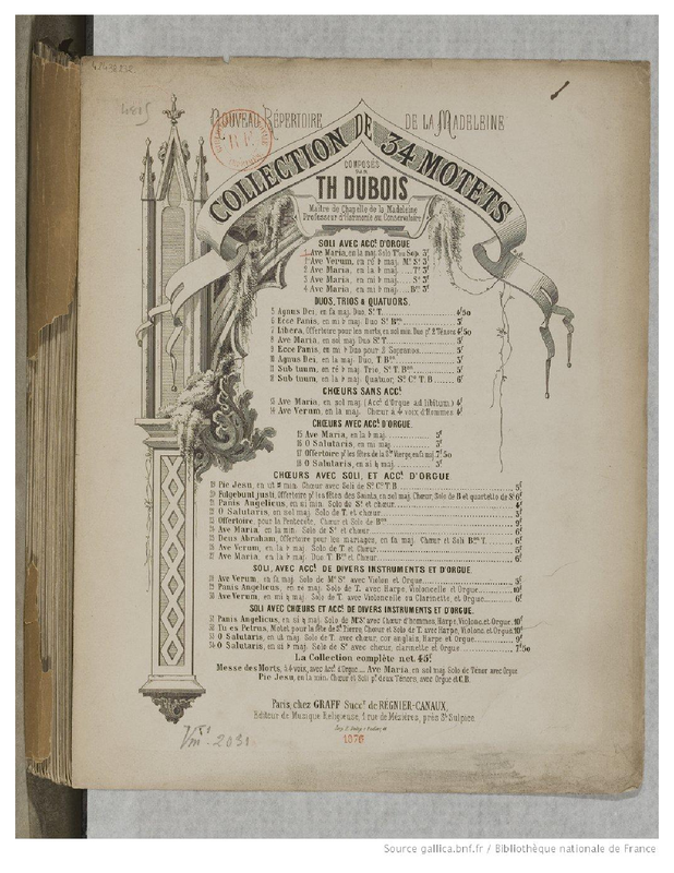 | Alternative. Title | Ave Maria en la majeur Solo pour Ténor ou Soprano |