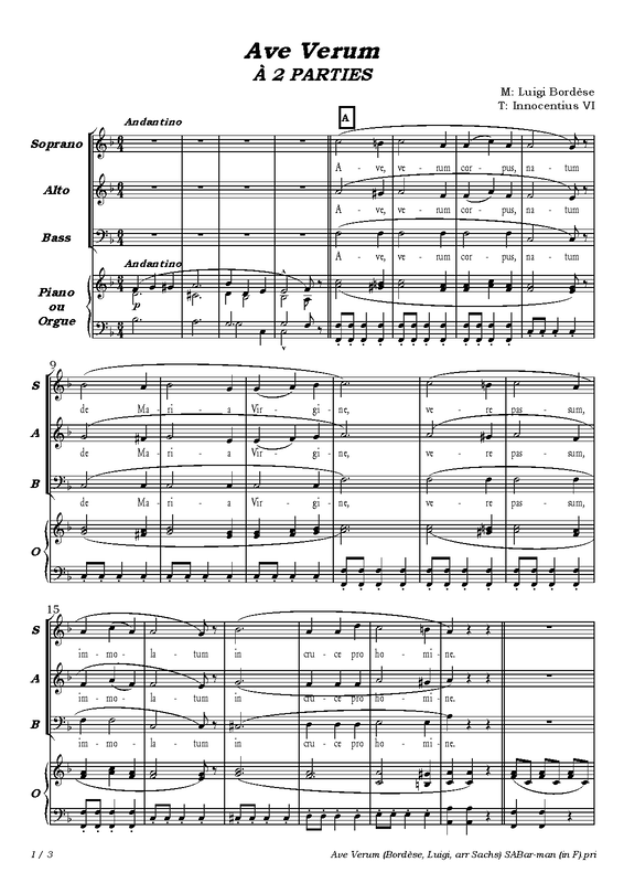 WorldCat shows one entry for an Ave Verum by Luigi Bordèse, but the instrumentation is not given in the entry. That entry comes from the Biblioteca Nacional de España, but they do not give the instrumentation either.