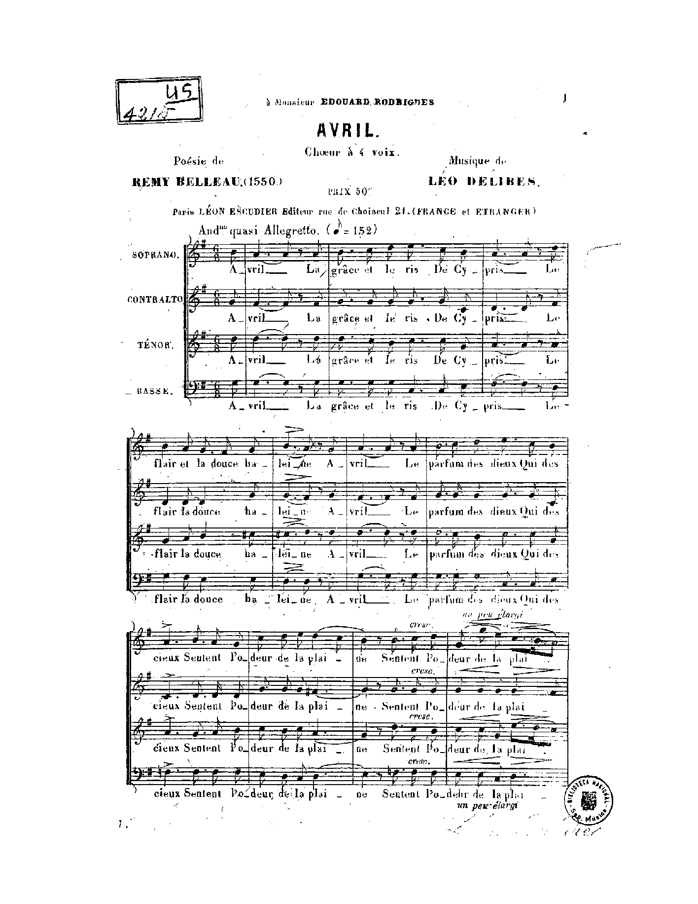 | Genre Categories | Secular choruses; Choruses; For mixed chorus; |
