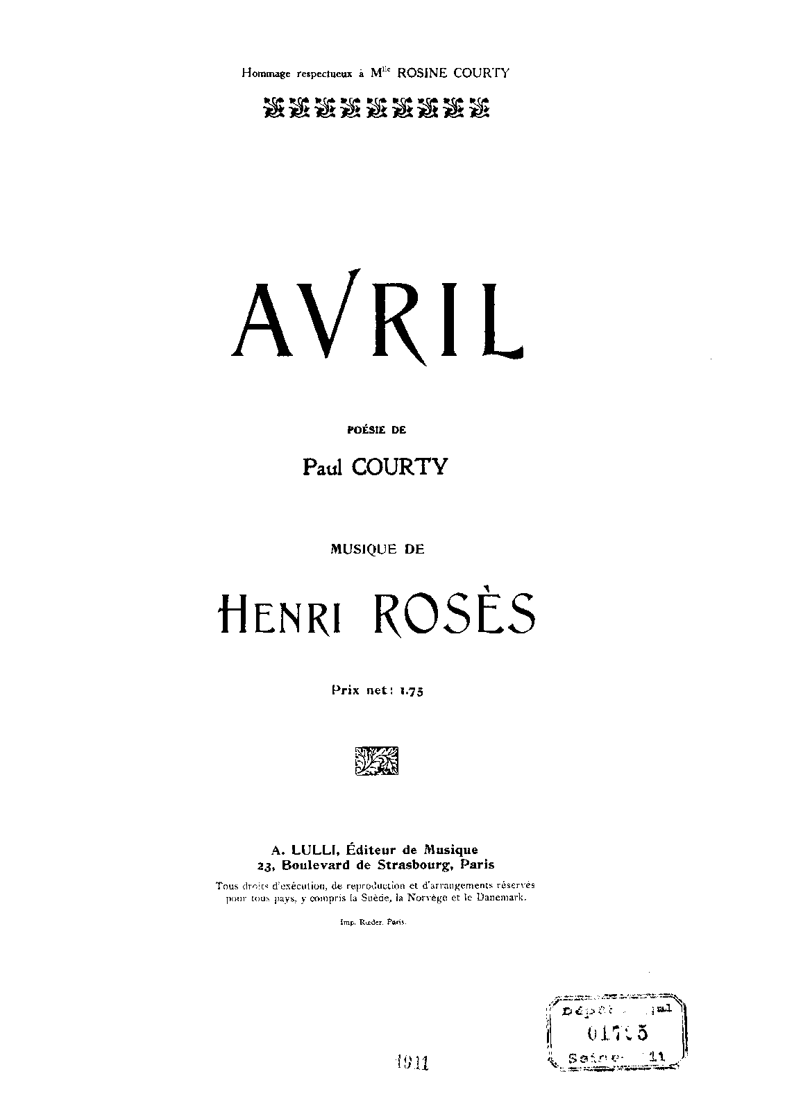| Dedication | Hommage respectueux à Mlle Rosine Courty |