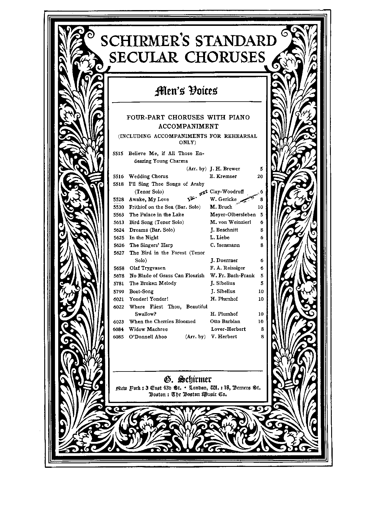 Although the cover page lists this under "Four-part choruses with piano accompaniment", the music itself indicates the piano part as "only for rehearsal".