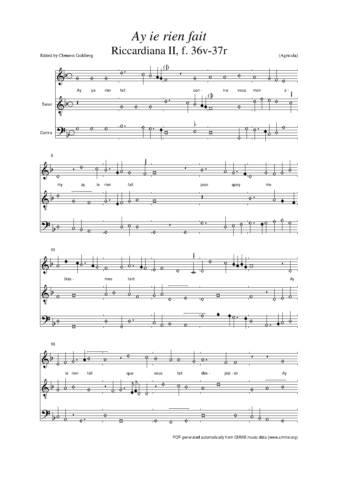 | Composer | Agricola, Alexander |
