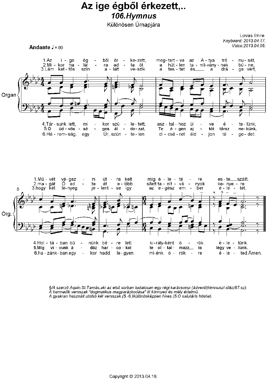 Sacred Himnus.(5.versus:"O salutáris hóstia")