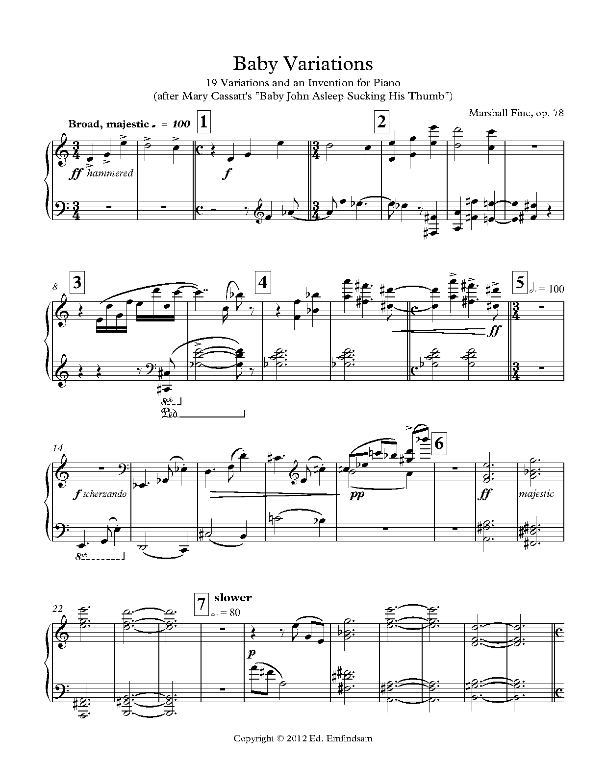 | Work Title | 19 Variations and an Invention for Piano (after Mary Cassatt's "Baby John Asleep Sucking His Thumb") |