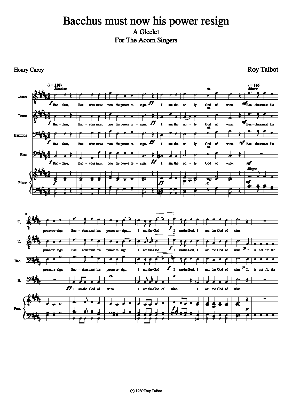 Bacchus Must Now His Power Resign (Talbot, Roy)