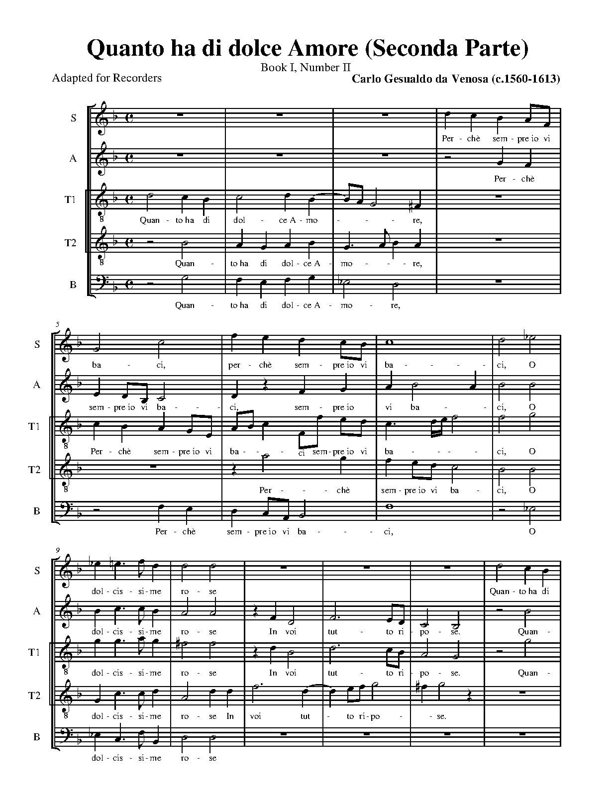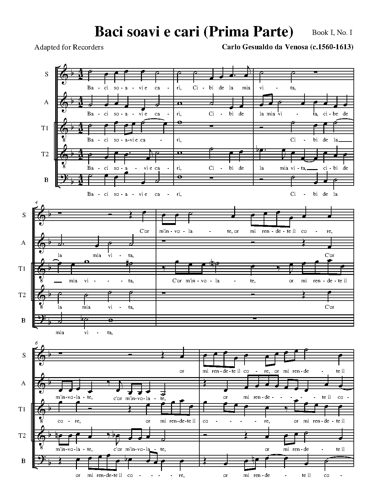 | First Publication | 1594 in Madrigals, Libro 1 (No.1) |